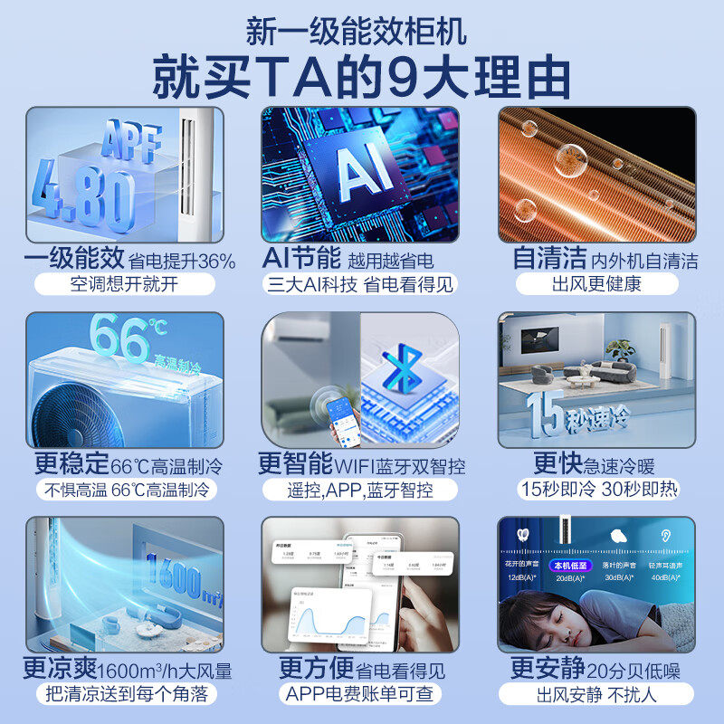 【套装】海尔空调Leader家用三室一厅新一级立式3匹挂机1.5匹WDB