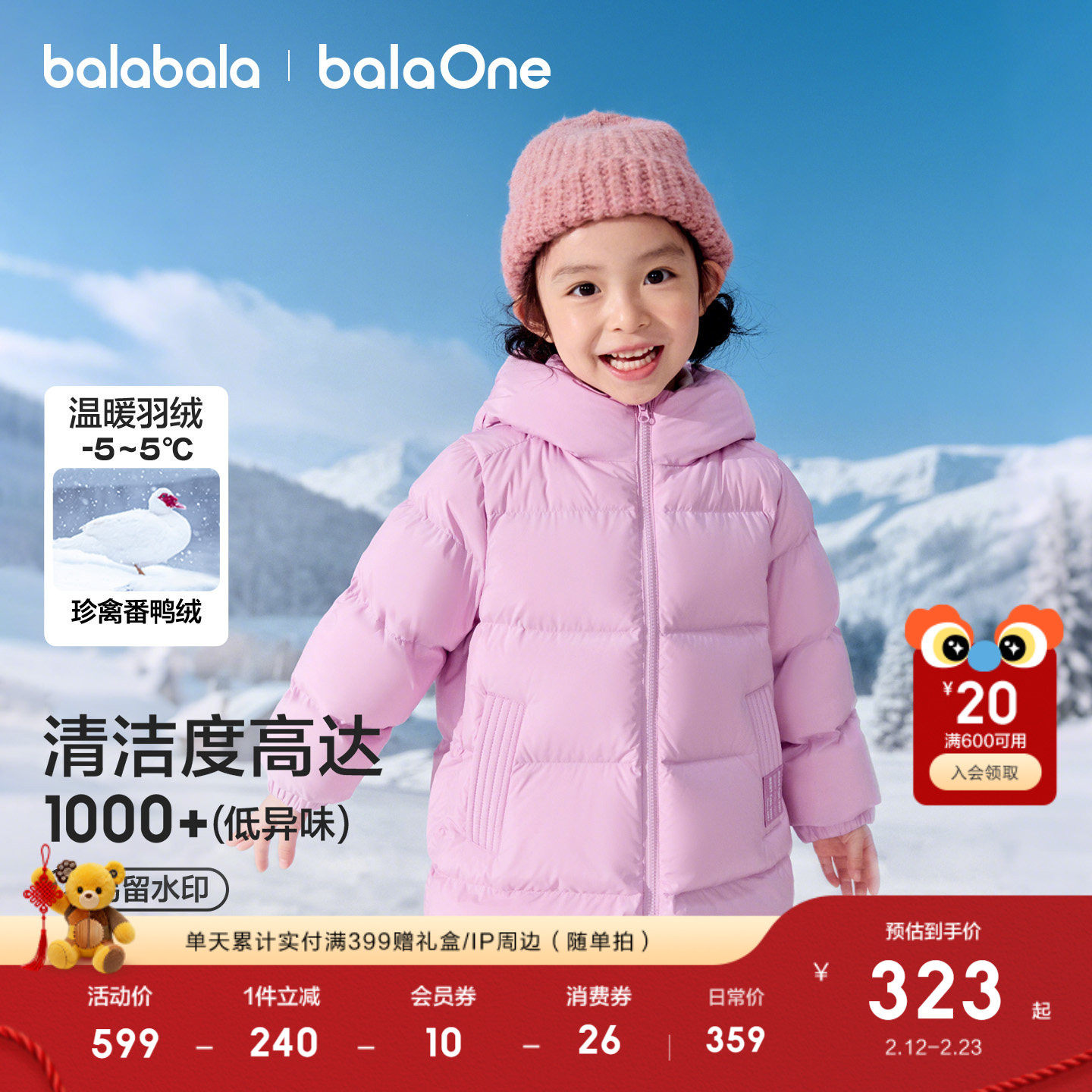 巴拉巴拉宝宝羽绒服冬装男童女童加厚保暖连帽外套萌2025新款上衣