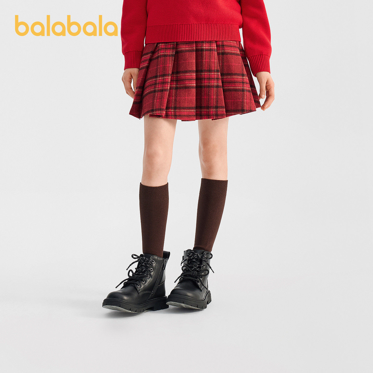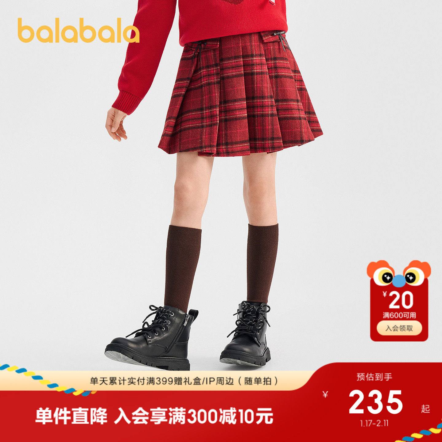 【商场同款】巴拉巴拉童装女童新年短裙2026春装新款百红色拜年服
