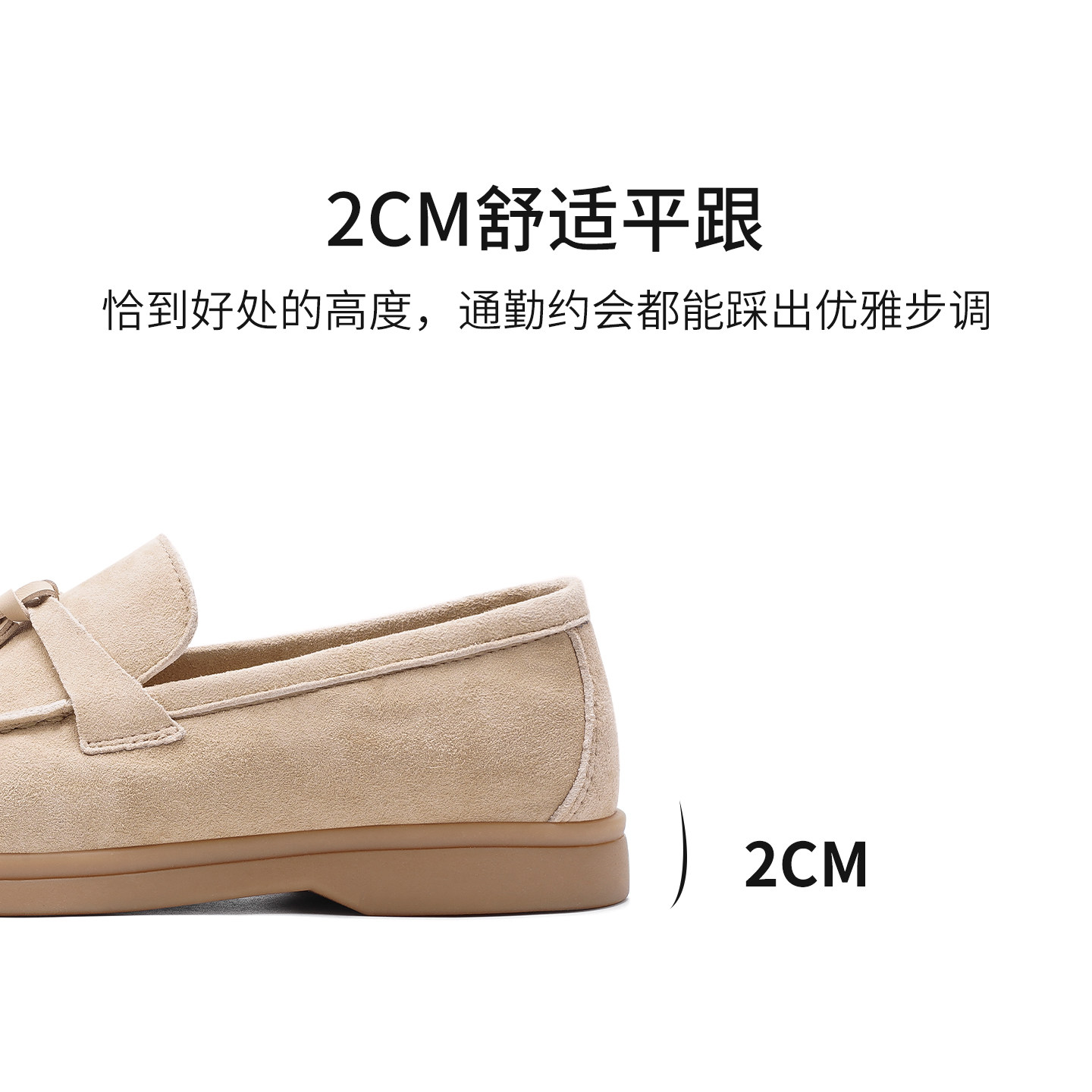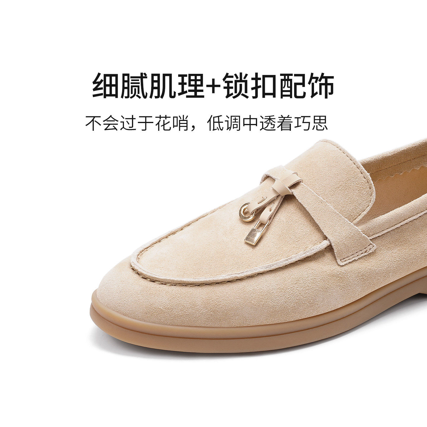 哈森精致锁扣乐福鞋女圆头平跟休闲百搭豆豆鞋2026新款HWS260159