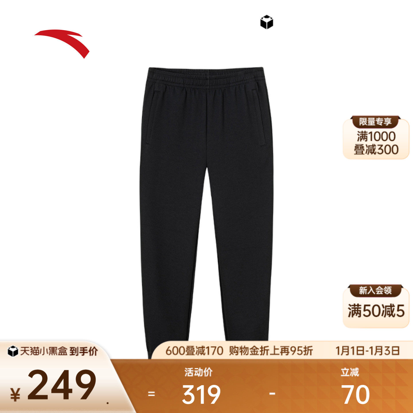 安踏运动长裤男士冬季新款跑步训练黑色束脚裤弹力卫裤152537309N