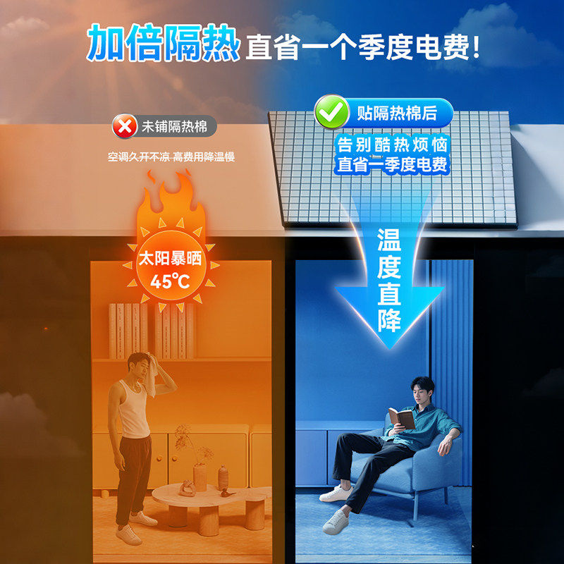 隔热棉保温棉材料室外阳光房屋顶防晒自粘铝箔隔热房顶管道保温棉