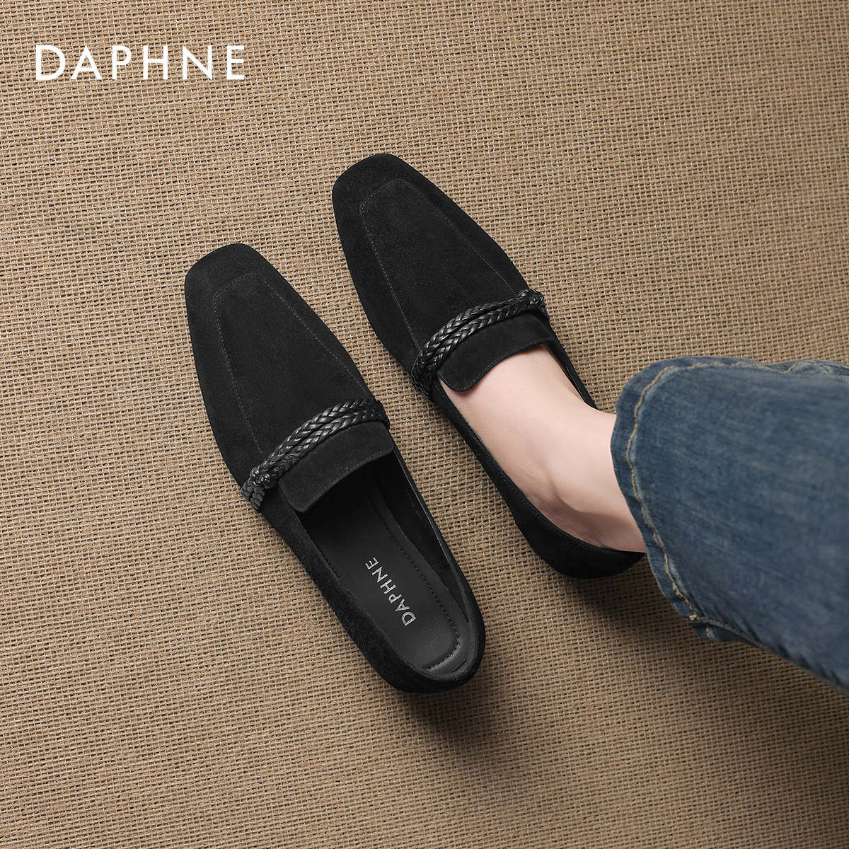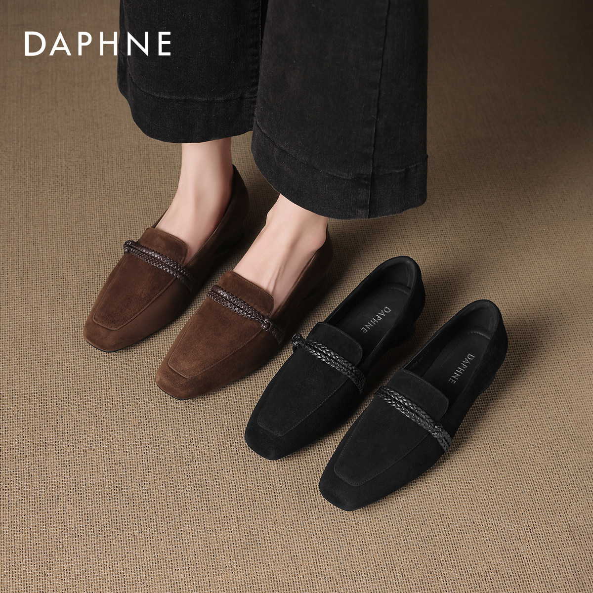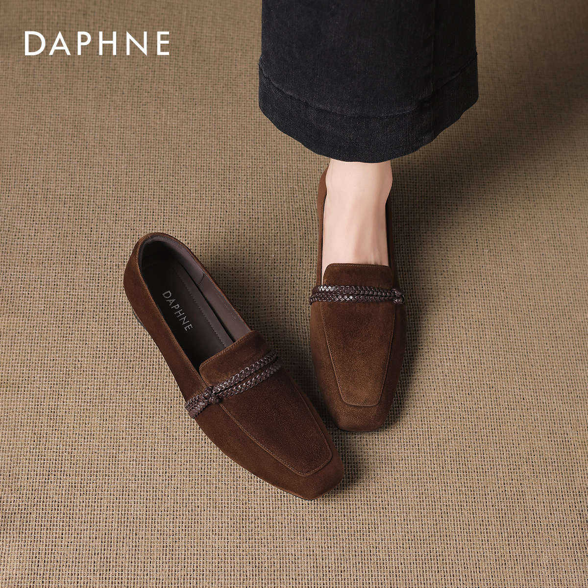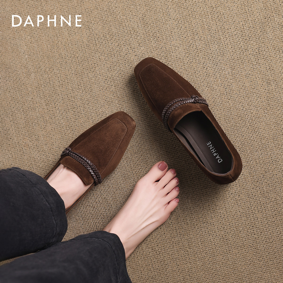 达芙妮老钱风乐福鞋女2026新款春季棕色方头小皮鞋一脚蹬通勤单鞋