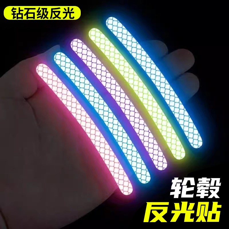 汽车轮毂反光贴自行车夜骑发光高亮贴纸摩托车轮毂炫彩车轮装饰贴