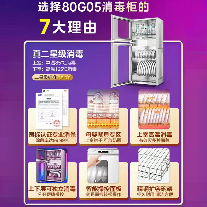 美的消毒柜家用小型烘干一体机厨房餐具立式二星级母婴碗筷消毒柜