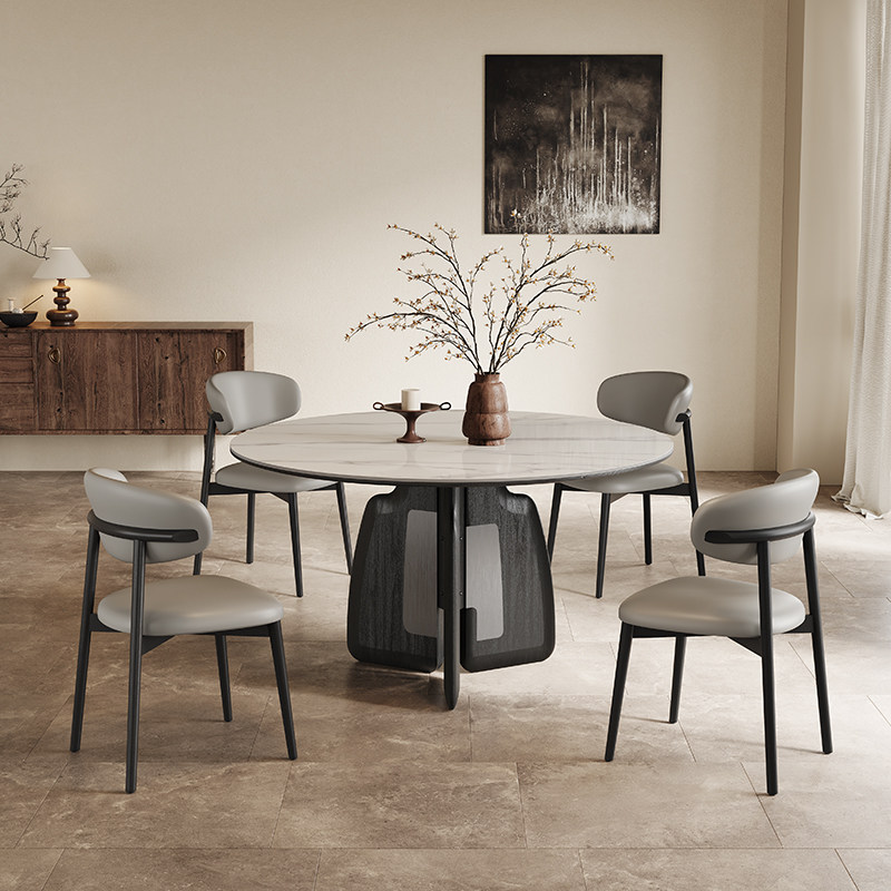 实木圆形餐桌轻奢高端家用2025新款意式极简8/10人岩板圆桌带转盘