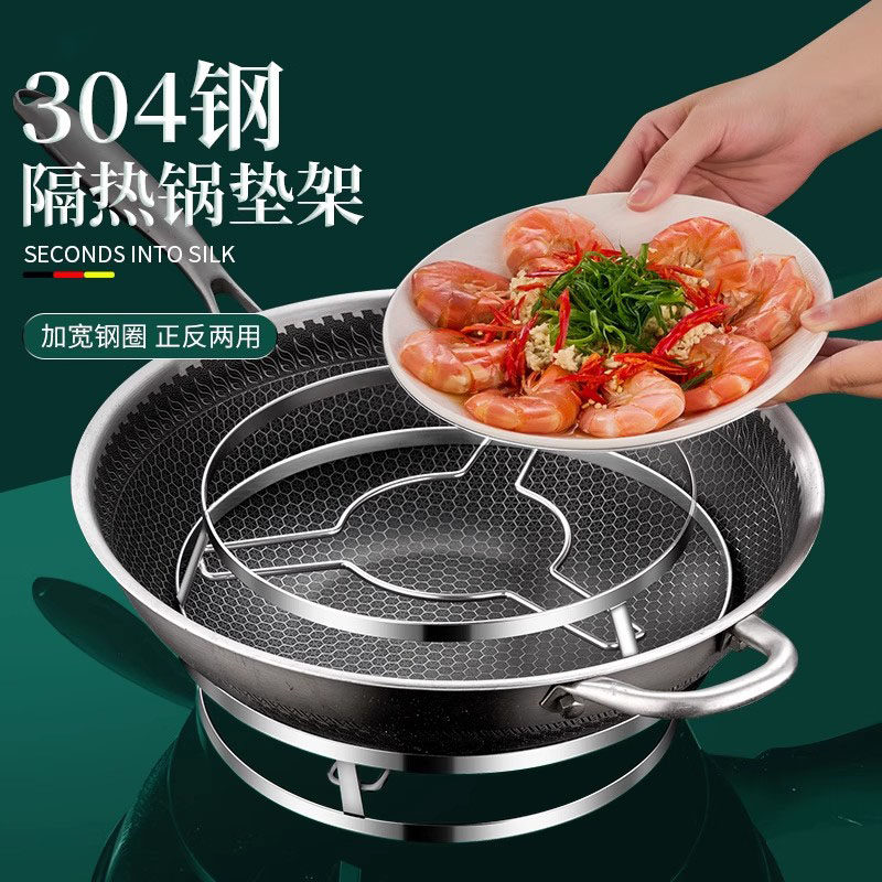 加粗304不锈钢锅架隔热防烫双层加厚放锅置物架放置桌面实用厨房