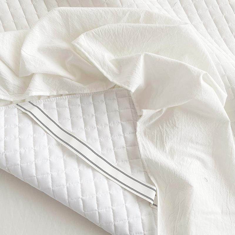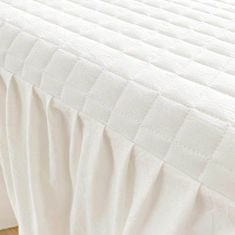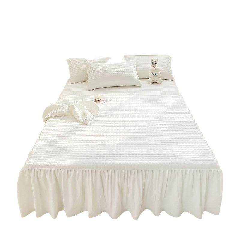 全棉色织水洗棉奶油纯色公主风绗缝夹棉床裙三件套纯棉加厚可机洗