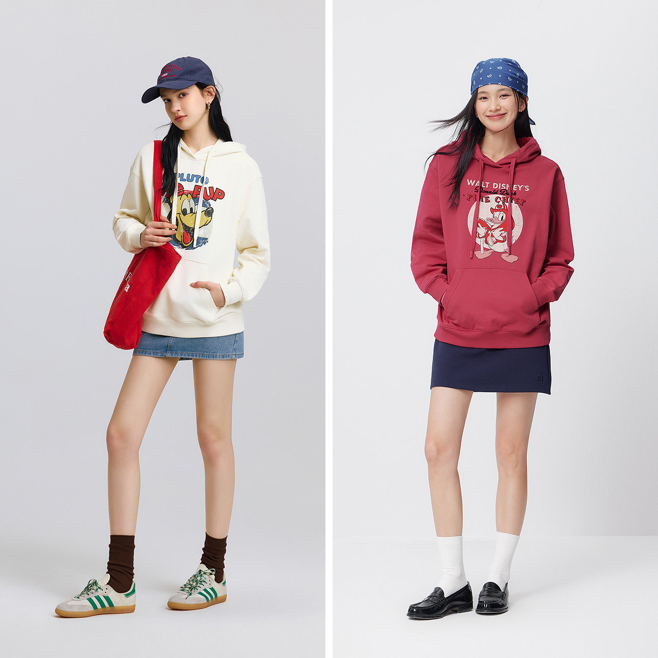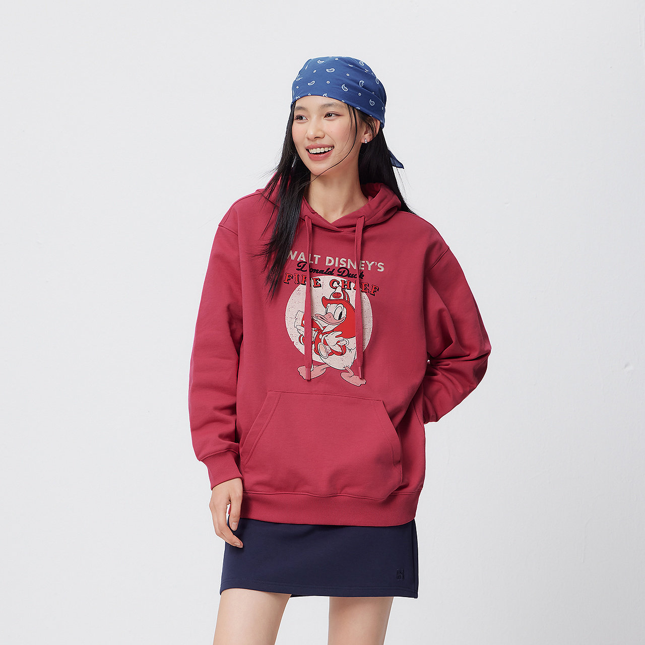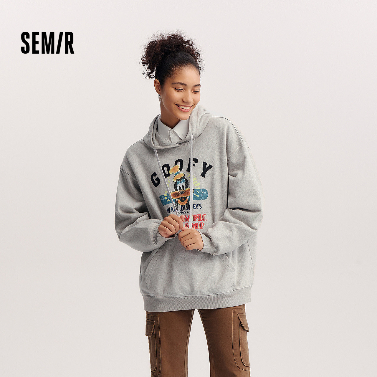森马迪士尼合作系列卫衣女春中长款连帽宽松印花绣花炸街重磅上衣