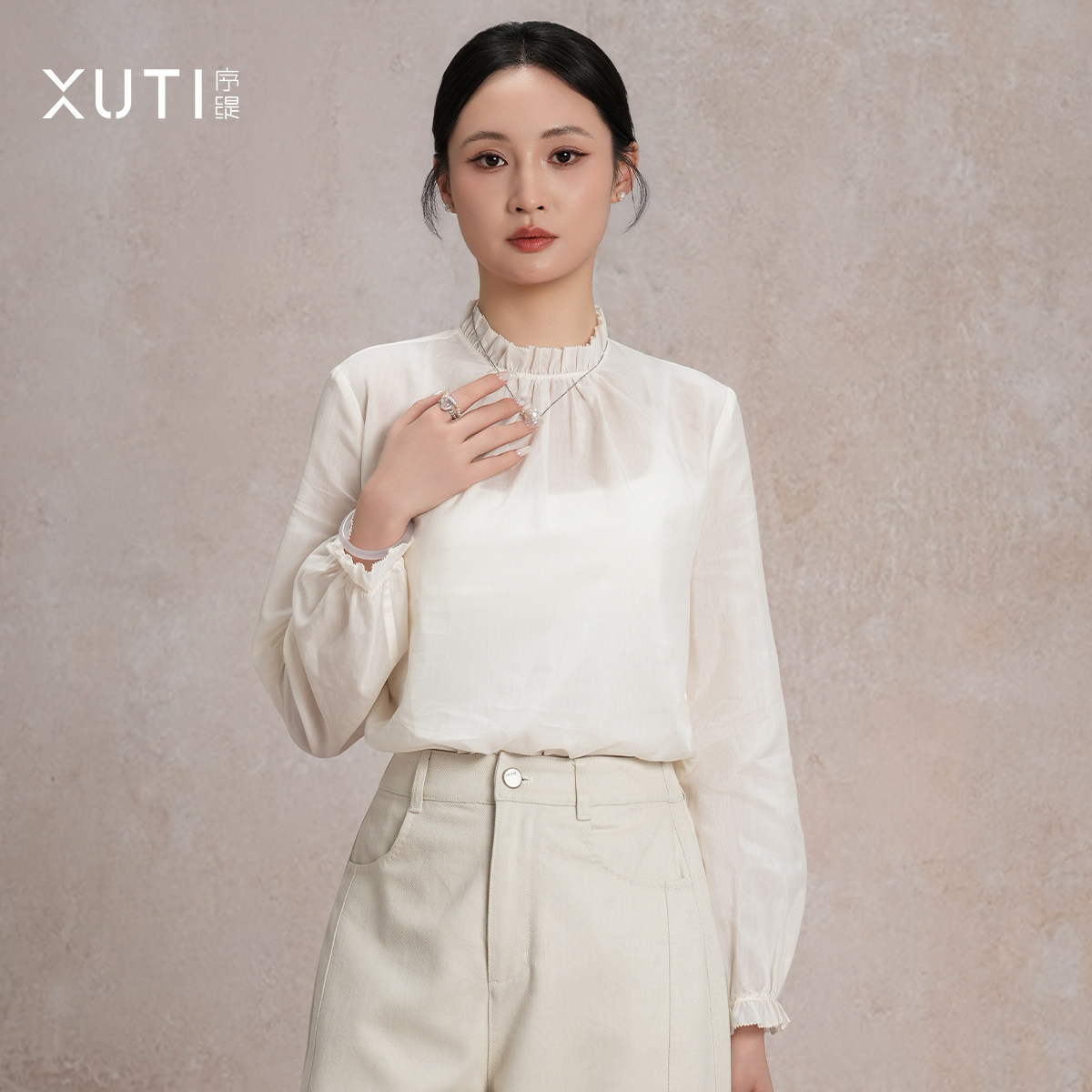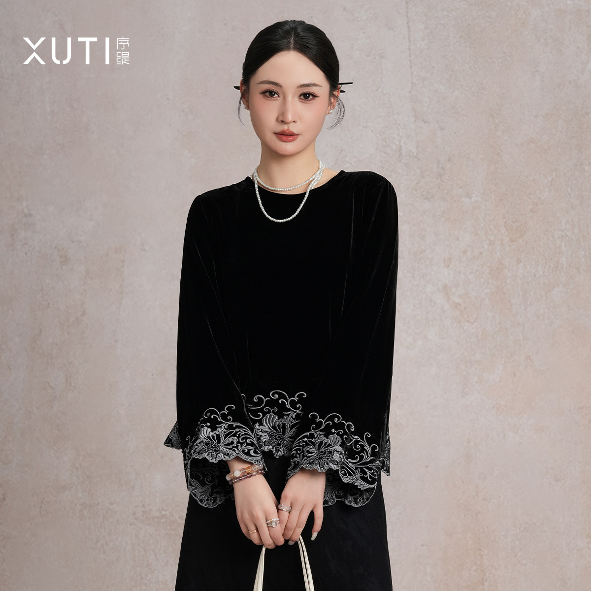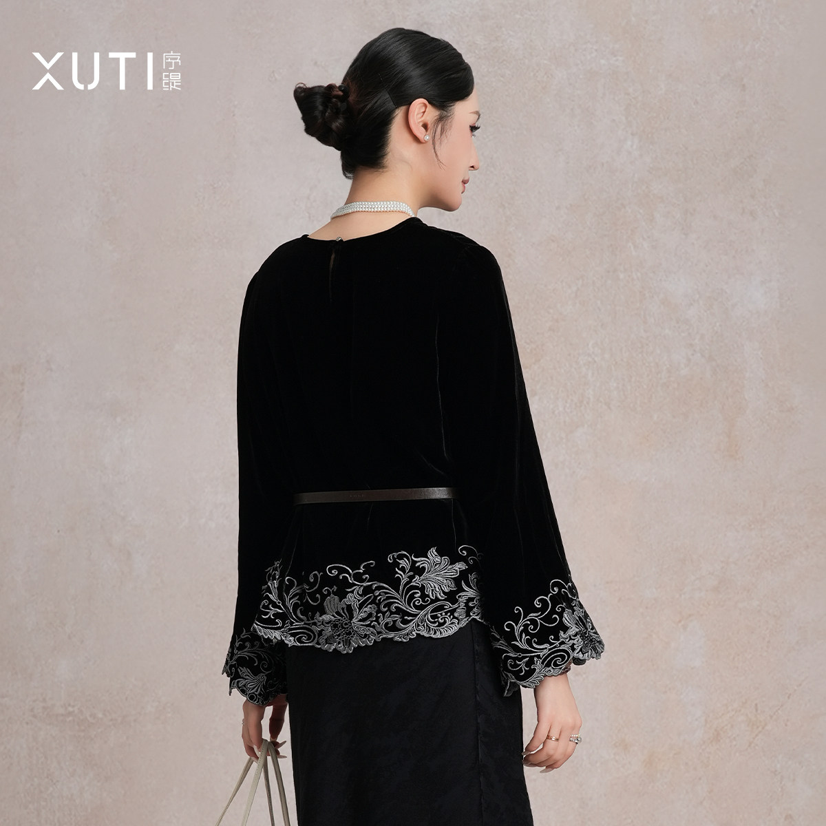 序缇质造『绒花』新中式桑蚕丝真丝丝绒上衣女春季新款H66-19026