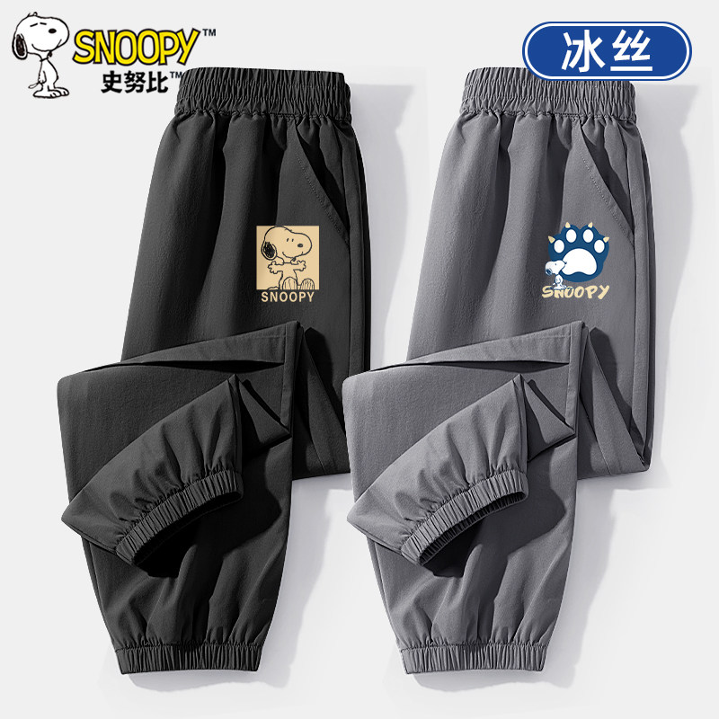 史努比童装速干裤男童冰丝运动裤夏季2025新款工装裤儿童防蚊裤薄