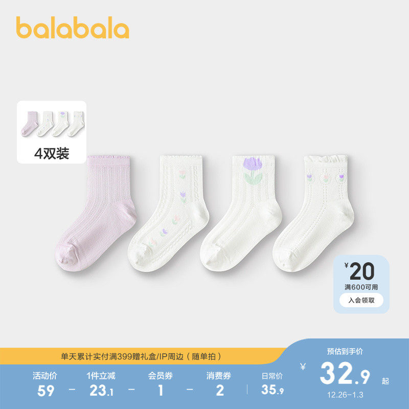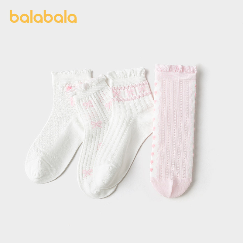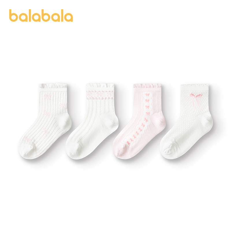 巴拉巴拉女童袜子儿童网眼袜夏季薄款透气中幼童甜美袜提花四双装