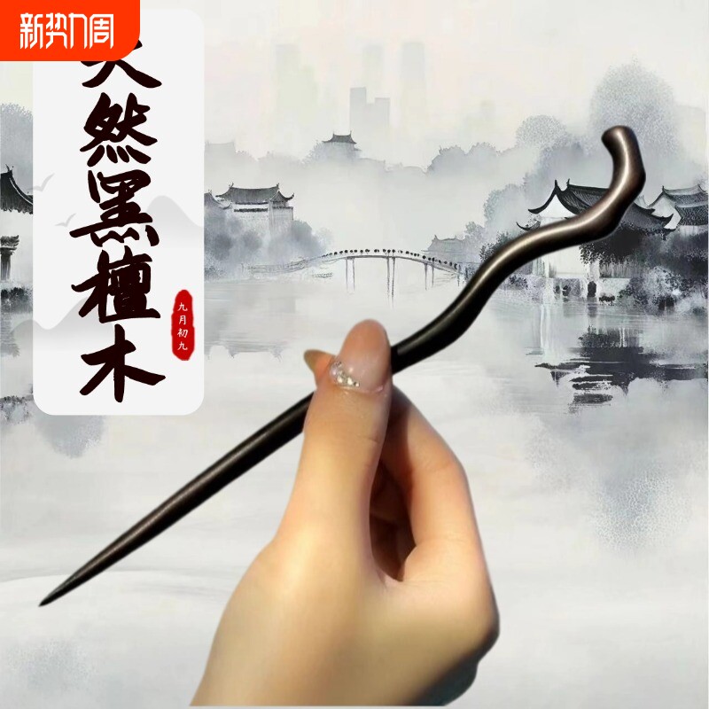 黑檀木发簪女古风新中式高级感现代日常木簪加长簪子发饰木头鹿角