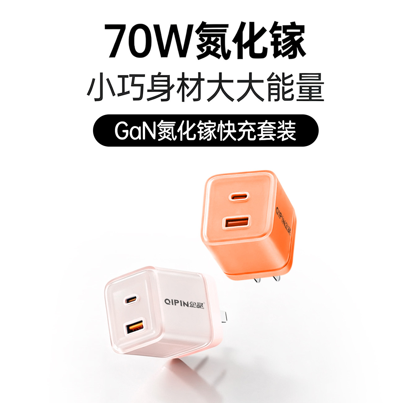 【3C认证】企品70W双口低温快充氮化镓充电头适用苹果/OPPO/VIVO/小米/华为/平板赠240W香薰数据线充电器套装