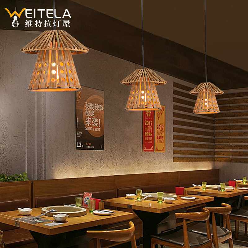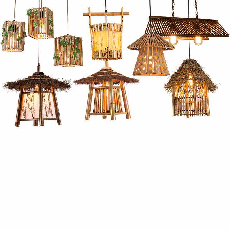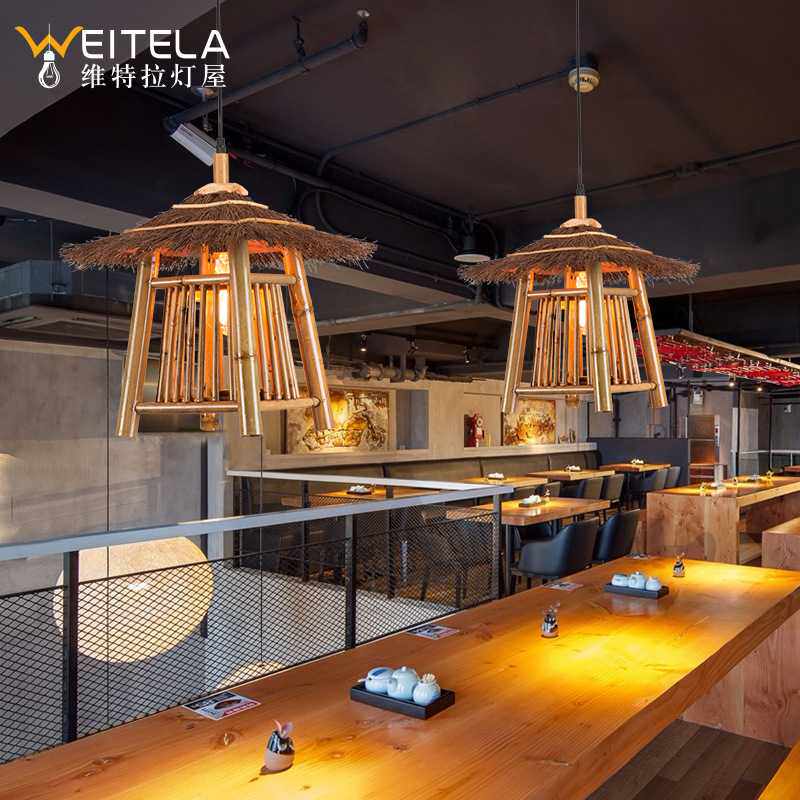 工业风竹艺吊灯农家乐餐厅灯具民宿茶室创意手编竹灯罩房子灯饰