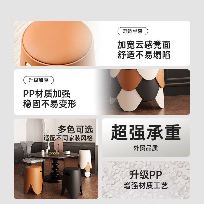 三梦塑料凳子家用加厚可叠放软包圆凳餐桌备用高板凳中古简约椅子
