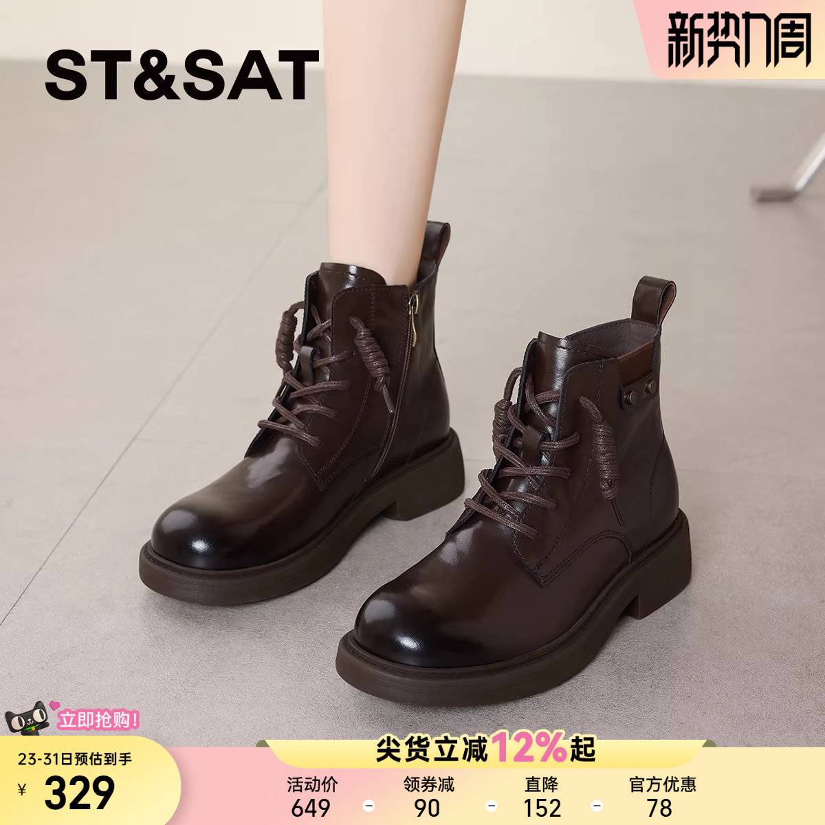 星期六复古厚底马丁靴短靴女靴子2025新款秋冬英伦风真皮切尔西靴