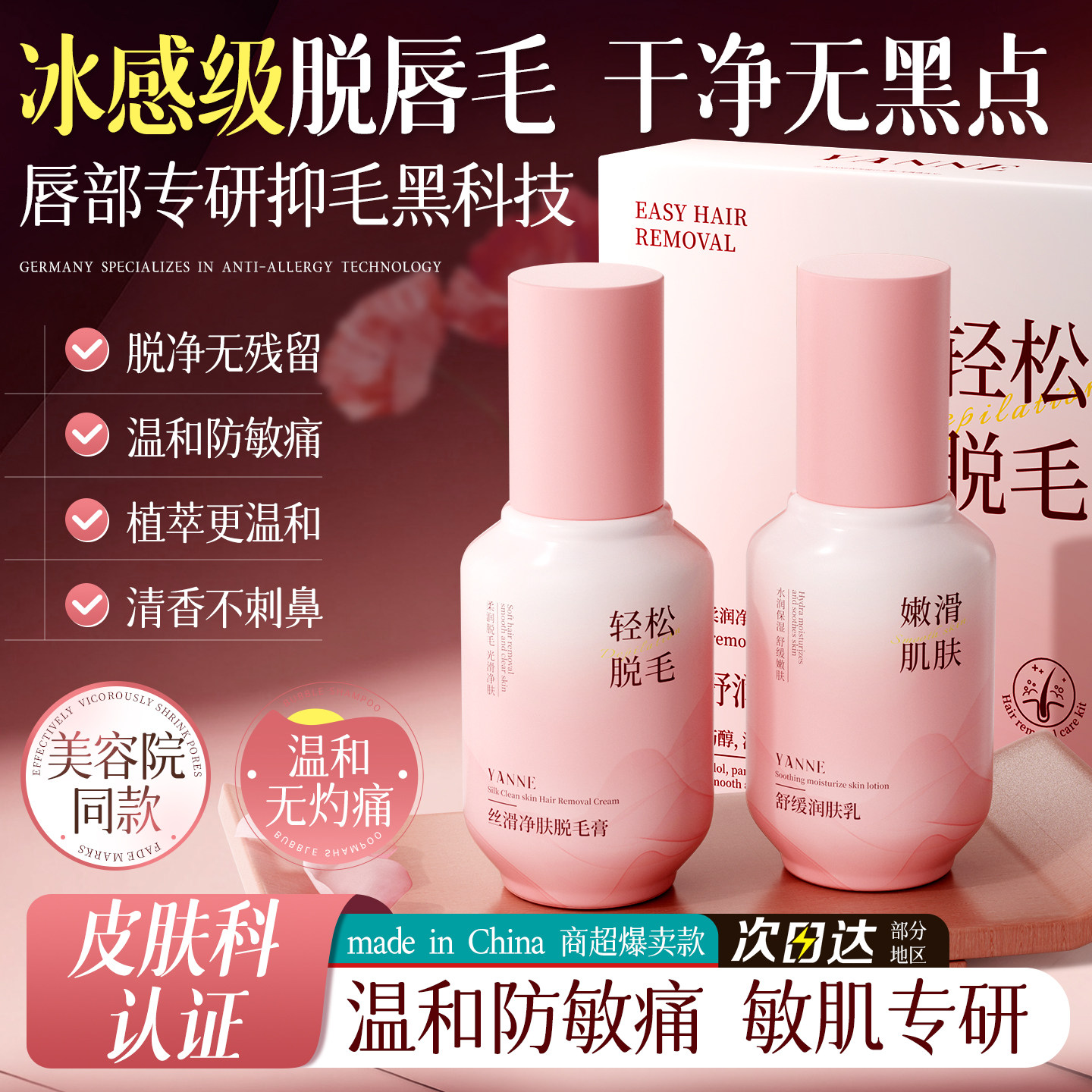 唇部脱毛膏脱唇毛去小胡子汗须漂胡剂否永男女士专用套盒久神器