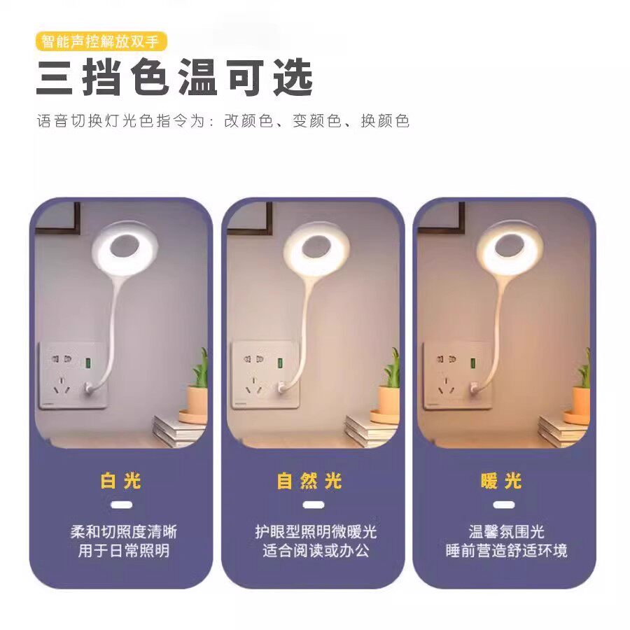 智能语音小夜灯卧室床头声控声音控制USB说话开关灯语音识别台灯