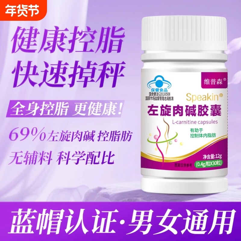 左旋肉碱胶囊有助于控制体内脂肪燃脂代谢蓝帽保健官方正品旗舰店