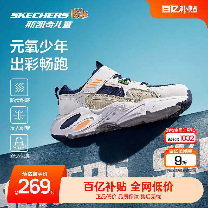 Skechers斯凯奇男童魔术贴老爹鞋儿童透气运动小白鞋中大童休闲鞋