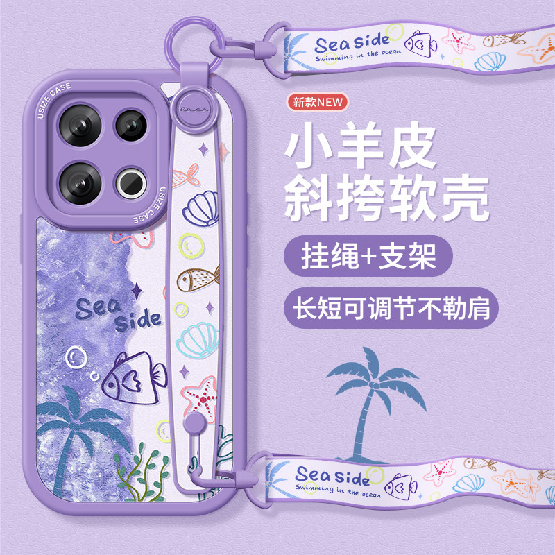 适用OPPOReno11Pro手机壳新款reno12全包防摔10挂绳Pro斜跨挎Reno8Pro女款reno13pro背带7腕带软壳夏威夷小鱼