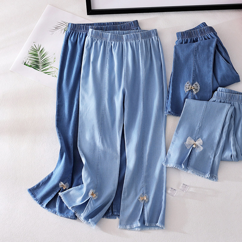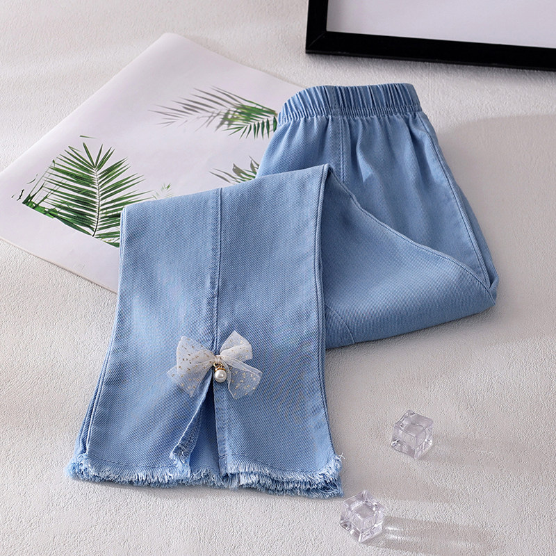 【清仓特惠】女童裤子夏季薄款长裤儿童洋气喇叭裤宝宝天丝牛仔裤