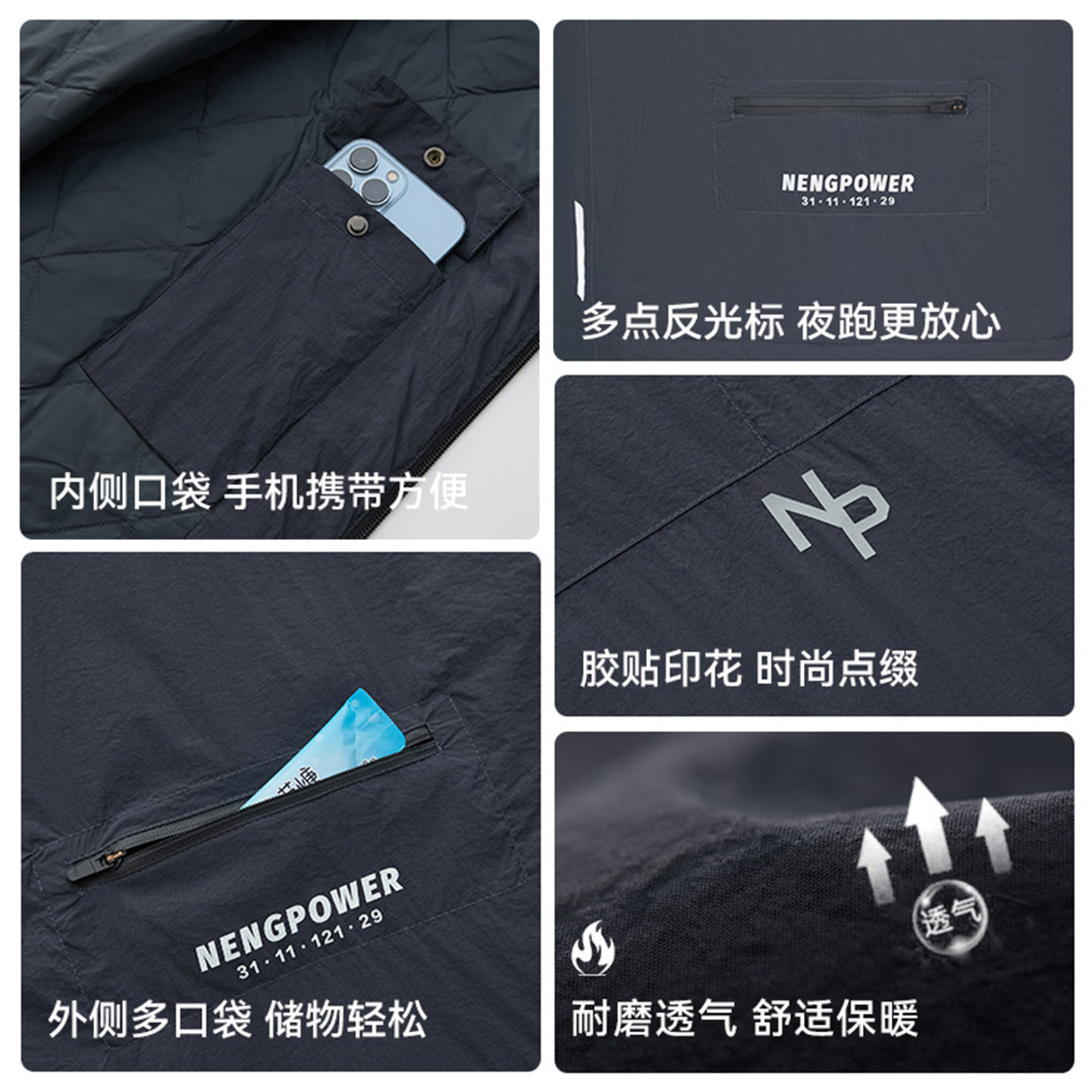 【秋冬上新】NP能跑男秋冬跑步户外运动轻量防风防水保暖羽绒马甲
