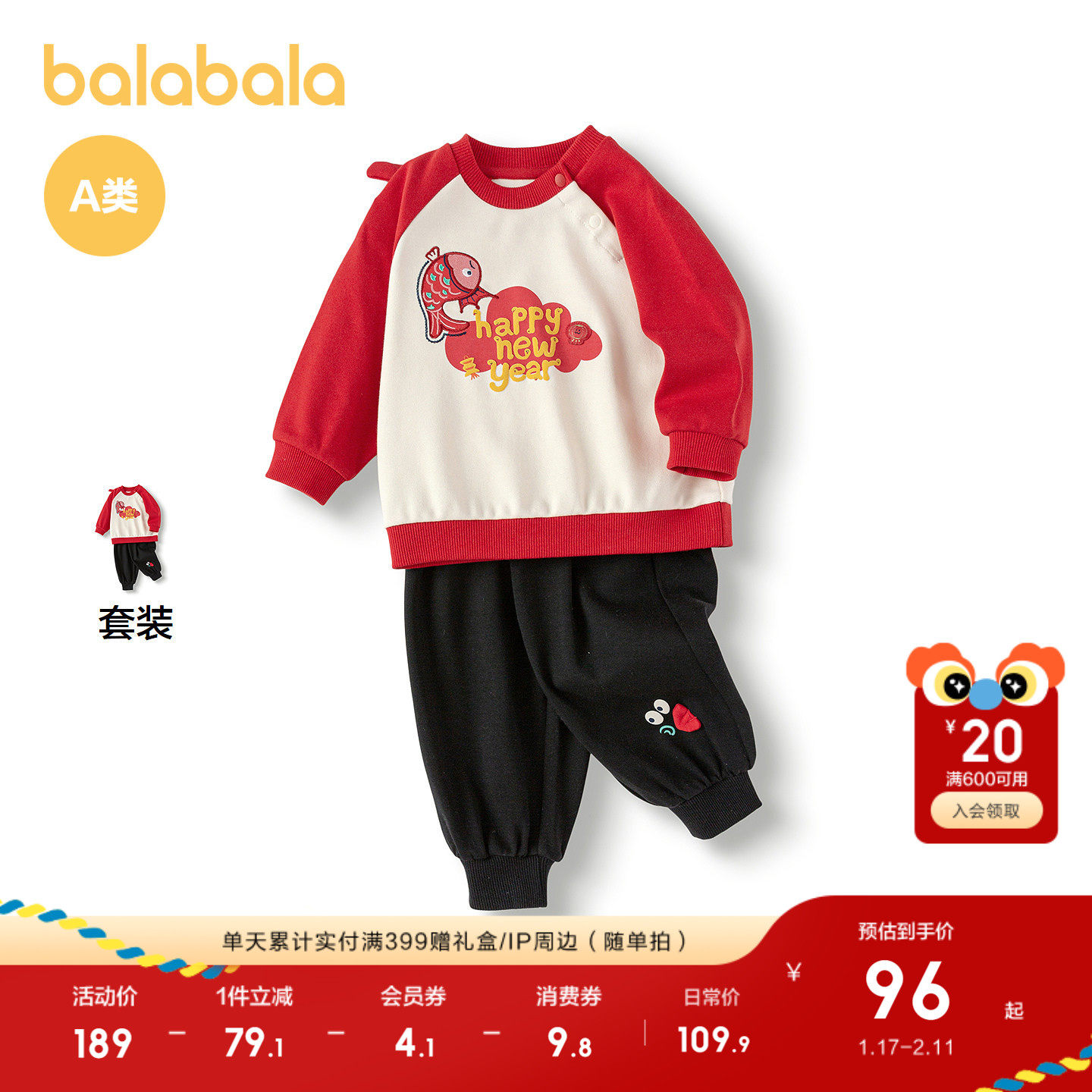巴拉巴拉童装衣服宝宝周岁礼服套装婴儿拜年服新中式喜红色拜年服