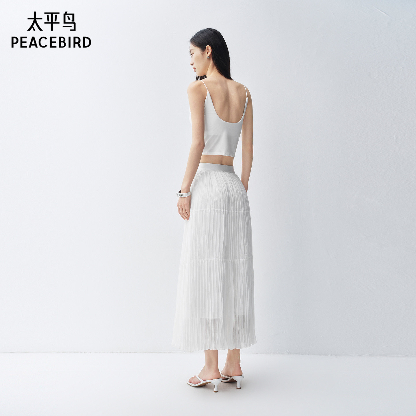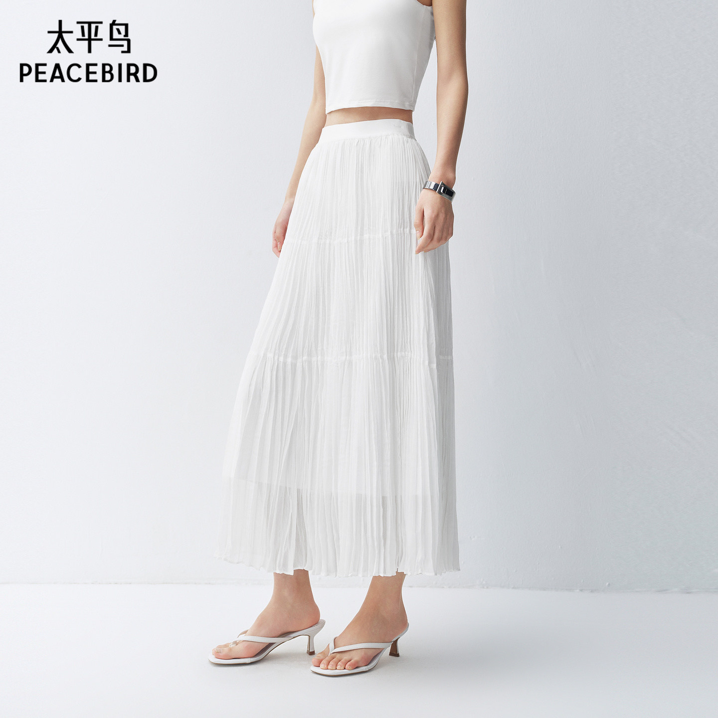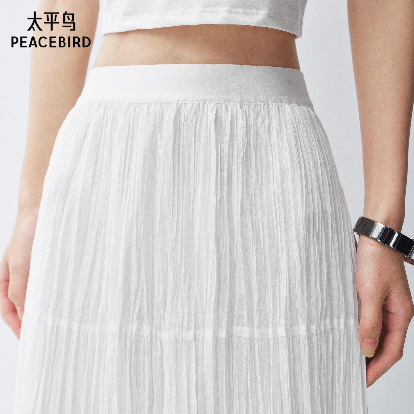 太平鸟百褶迷笛裙女白色半身蛋糕伞裙出游长款波嬉风2026春夏新款