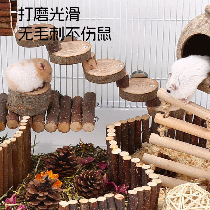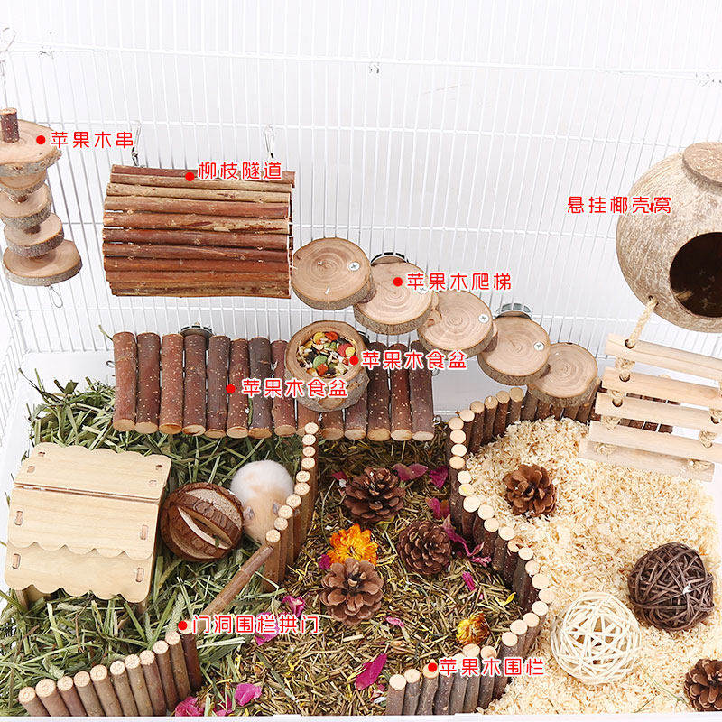 仓鼠玩具苹果木隧道躲避窝秋千吊床爬梯围栏金丝熊造景用品