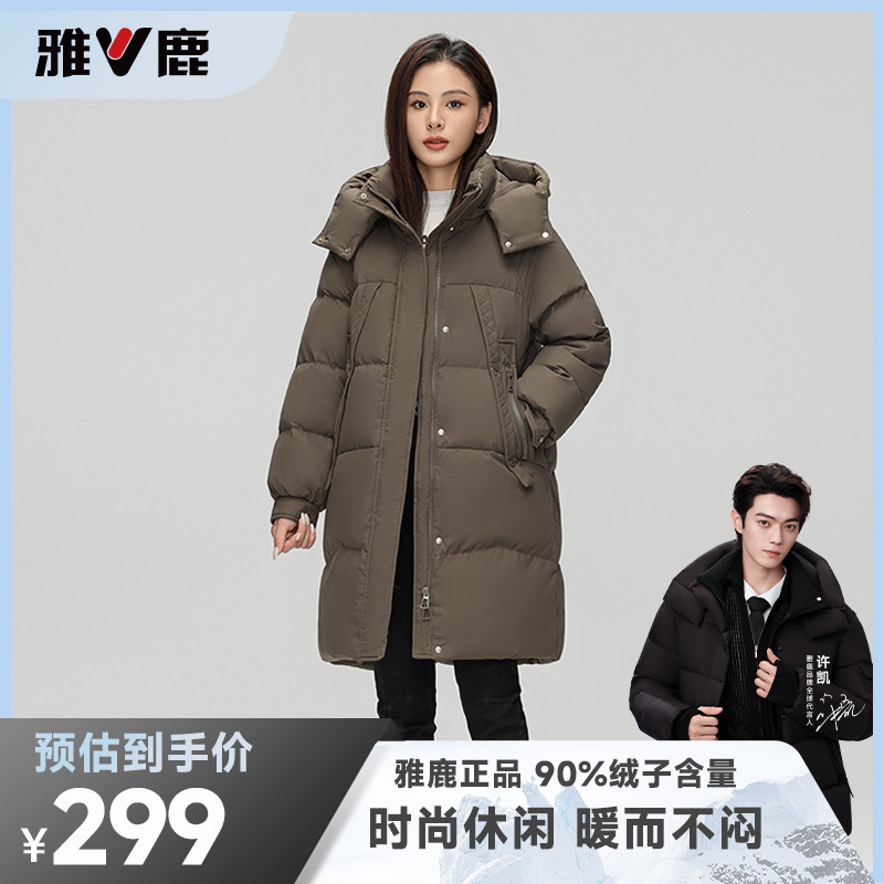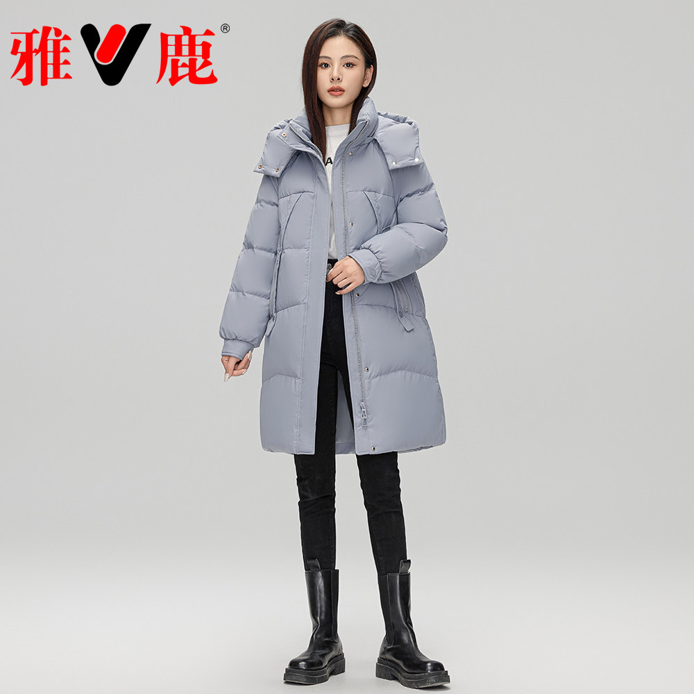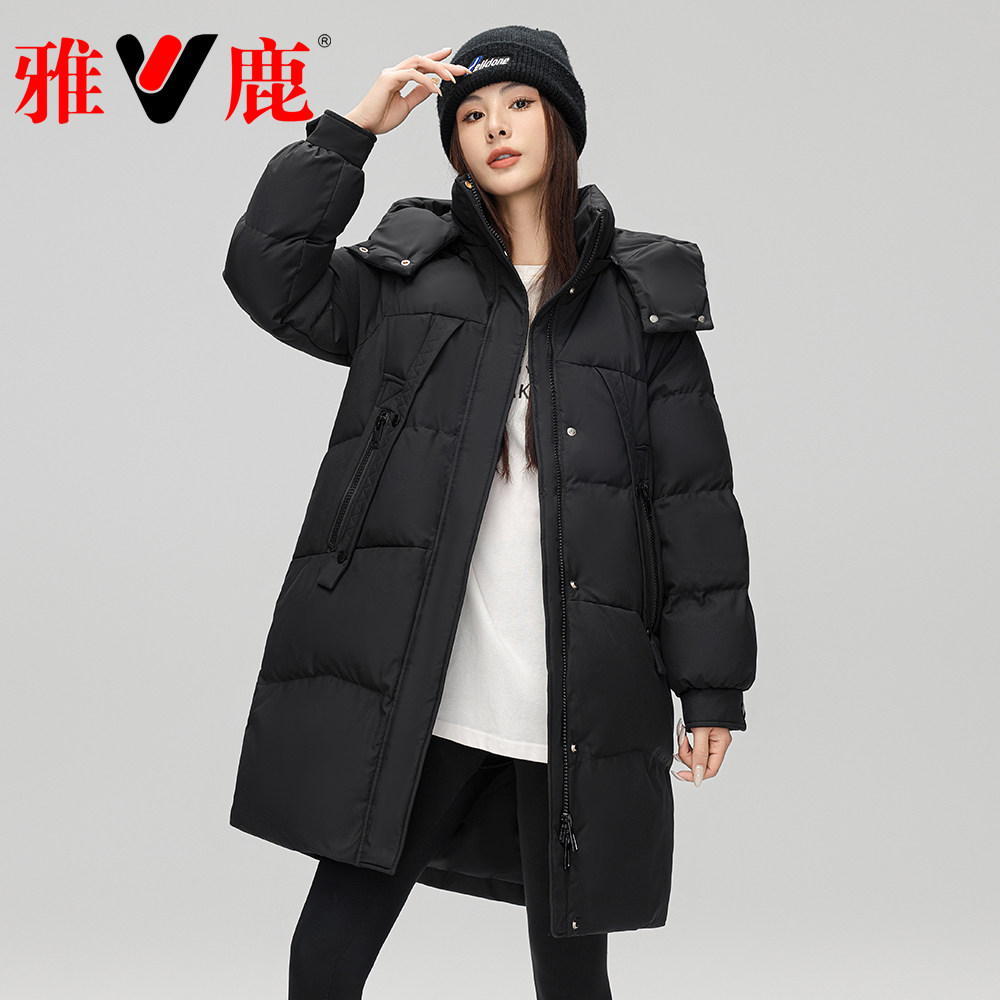 雅鹿2025新款时尚中长款羽绒服女加厚保暖白鸭绒宽松显瘦外套潮流