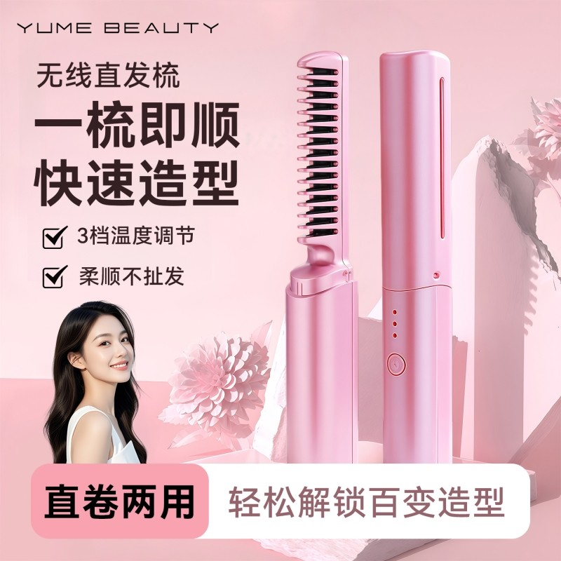 迷你直发梳无线卷发棒负离子不伤发持久定型充电便携夹板卷直两用