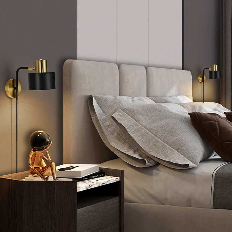 轻奢北欧可旋转摇臂明装带插头开关免布线卧室书房床头壁灯家用