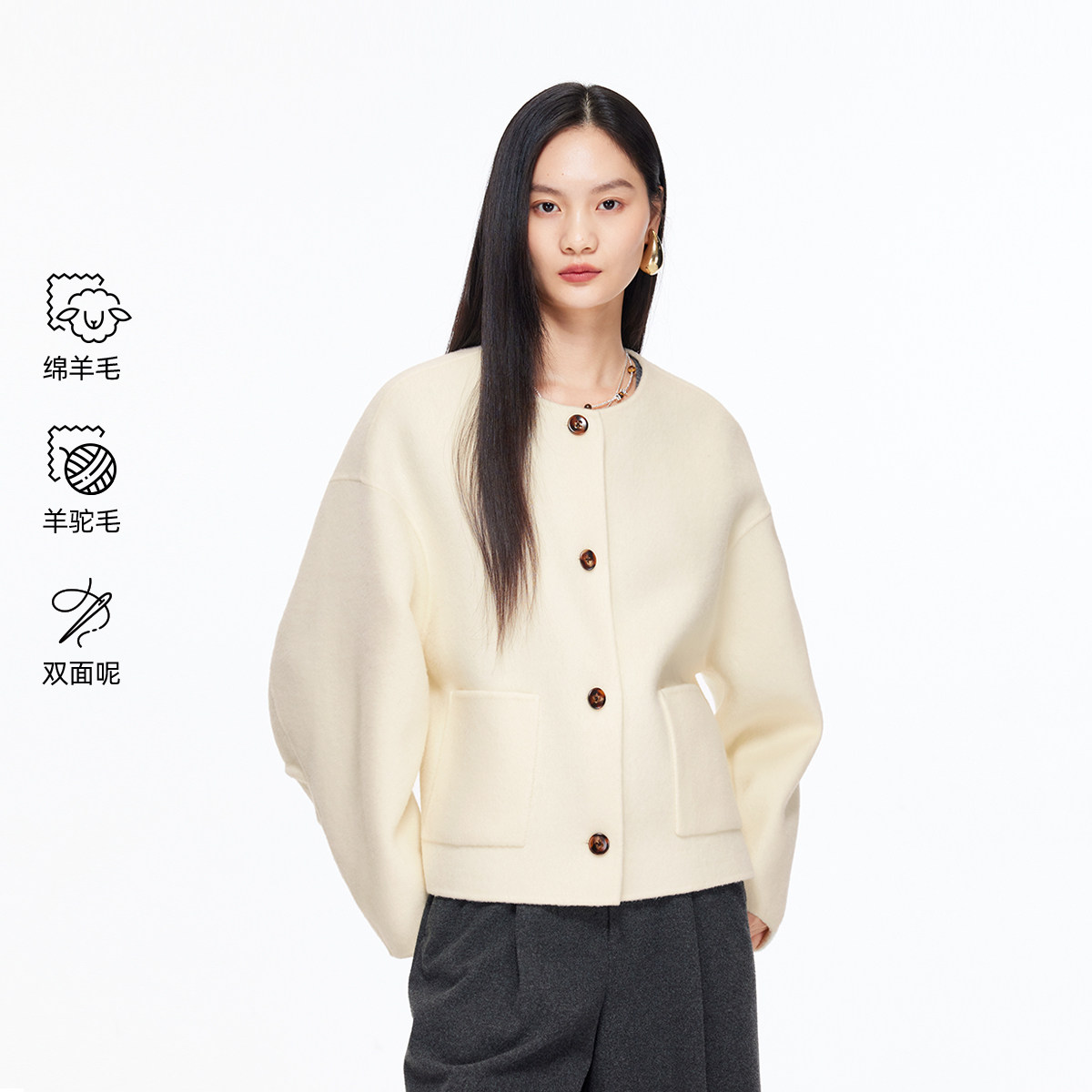 Vero Moda毛呢大衣2026春季新款含绵羊毛羊驼毛双面呢32546T008