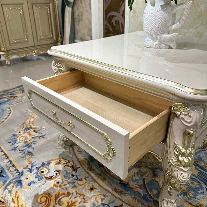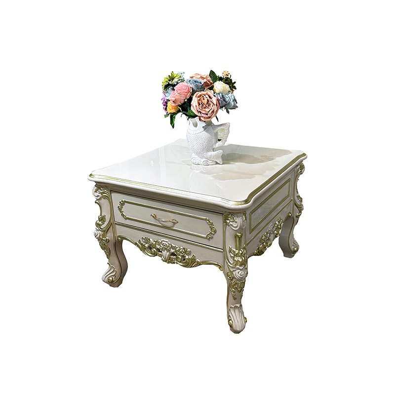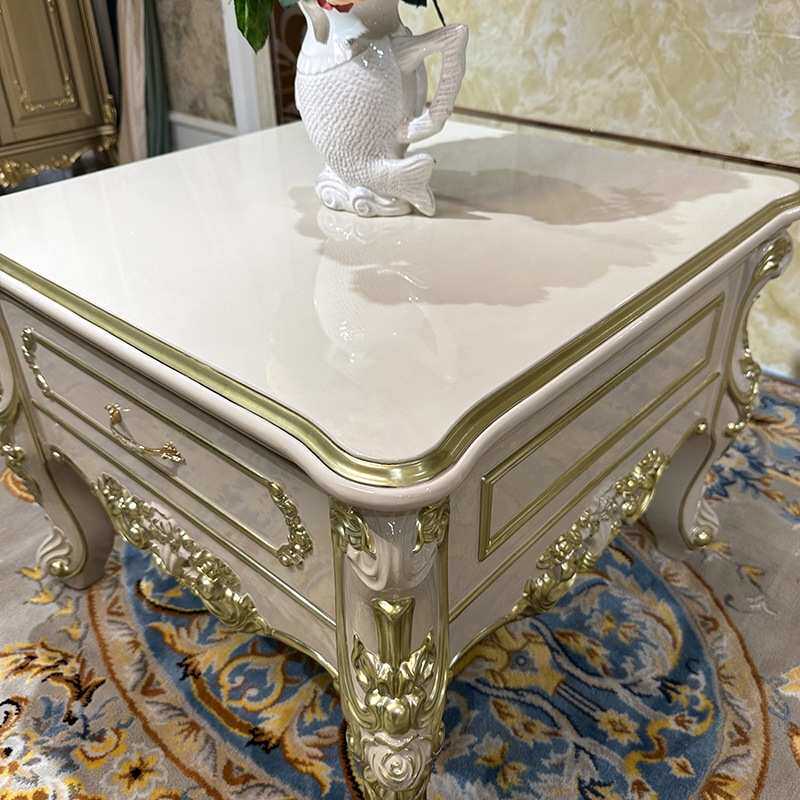 锐森贵族 法式小茶几 欧式实木雕花角几带抽屉暖灰色沙发边几客厅