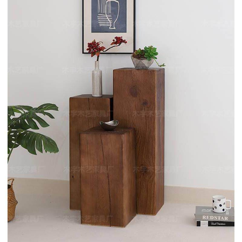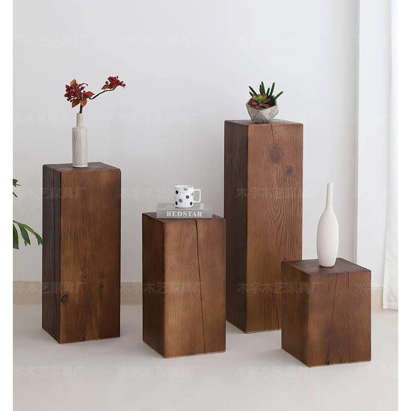 北欧复古摆件实木墩底座柱子原木客厅茶室木雕民宿玄关茶几边几