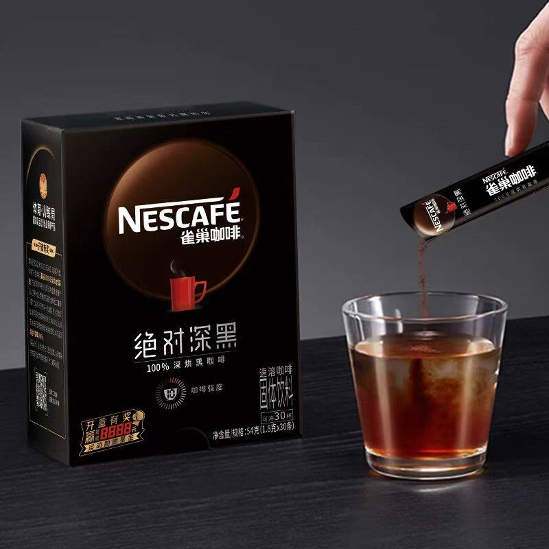 雀巢绝对深黑咖啡深度烘焙美式黑咖苦速溶咖啡粉办公健身提神盒装