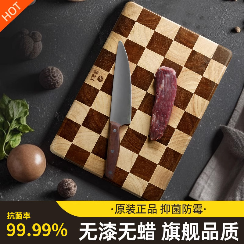 原森太棋盘格菜板抗菌防霉家用案板实木切菜面板厨房专用水果砧板