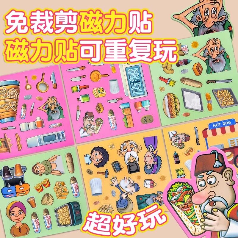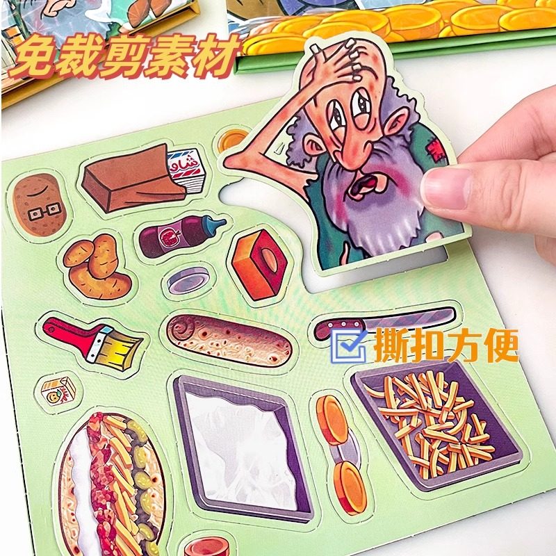 萌崽新款学霸学渣果冻贴纸安静书儿童免裁剪手工粘贴DIY女孩趣味玩具