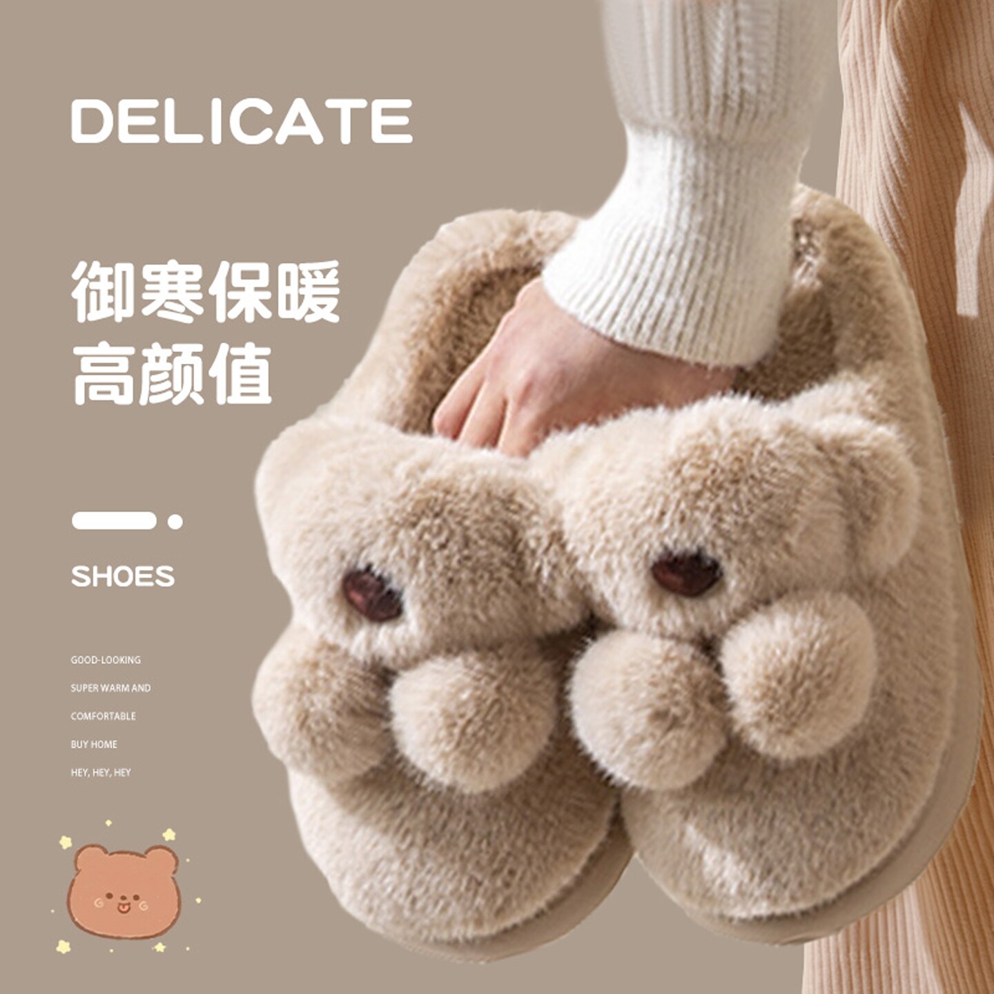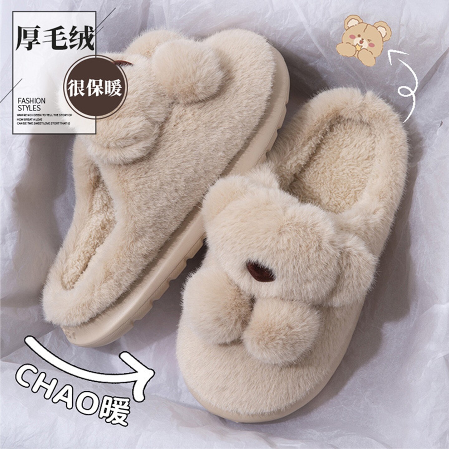 毛绒棉拖鞋女士冬季2025新款室内家居卡通厚底踩屎感防滑保暖棉拖