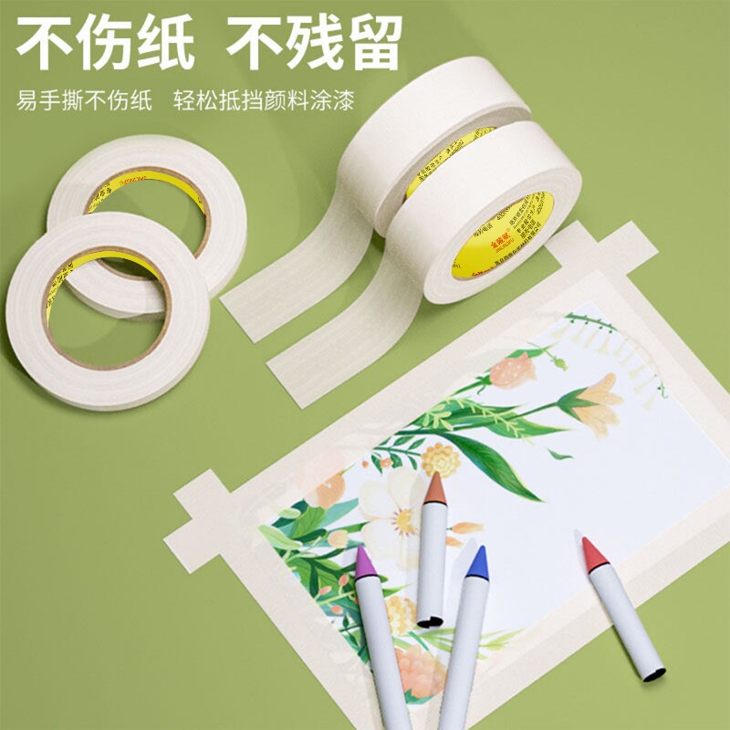 永冠美纹纸胶带可书写纸胶布喷漆遮蔽美纹胶手撕胶带美文纸美缝胶带画画贴边不残留分色胶带纸胶带美术生专用