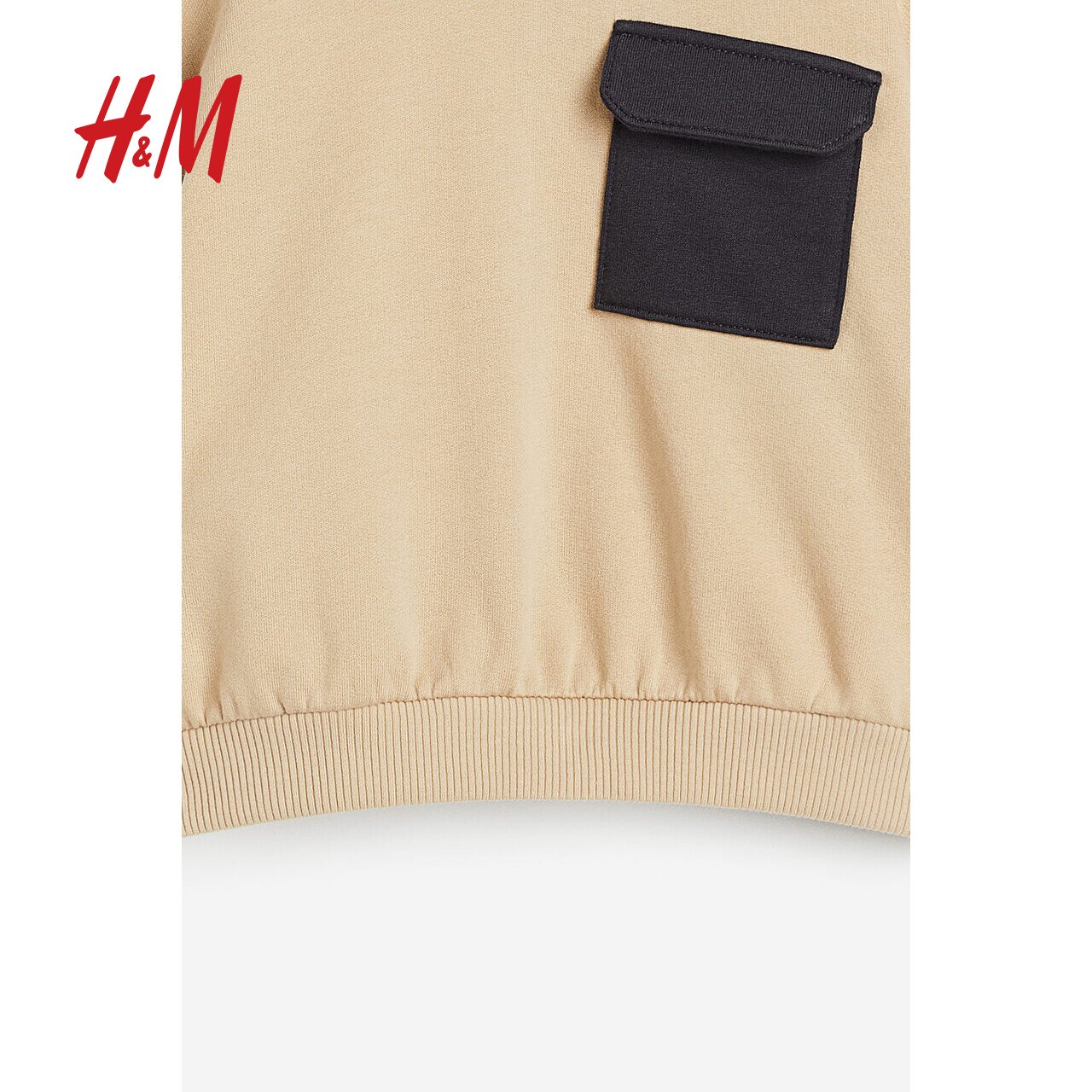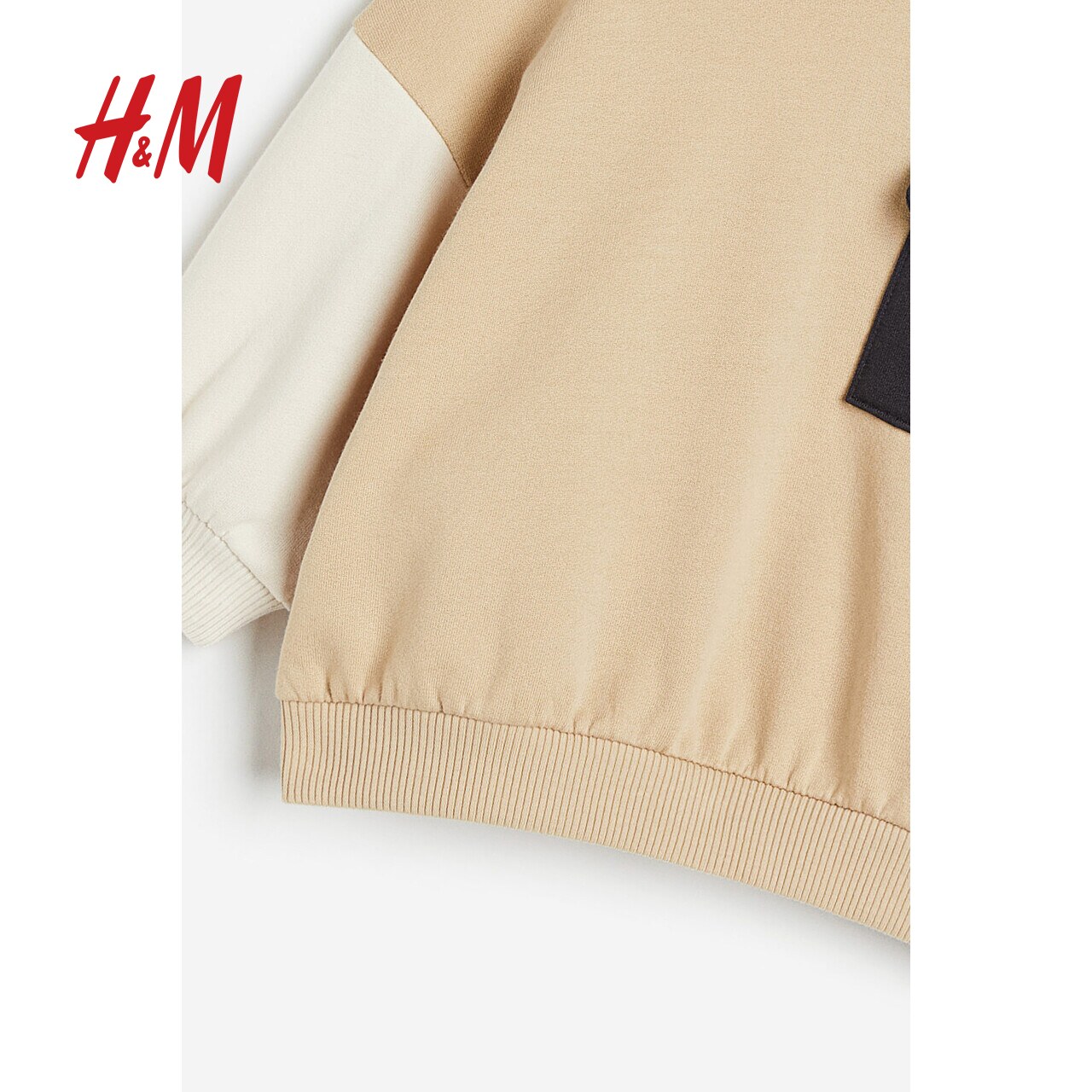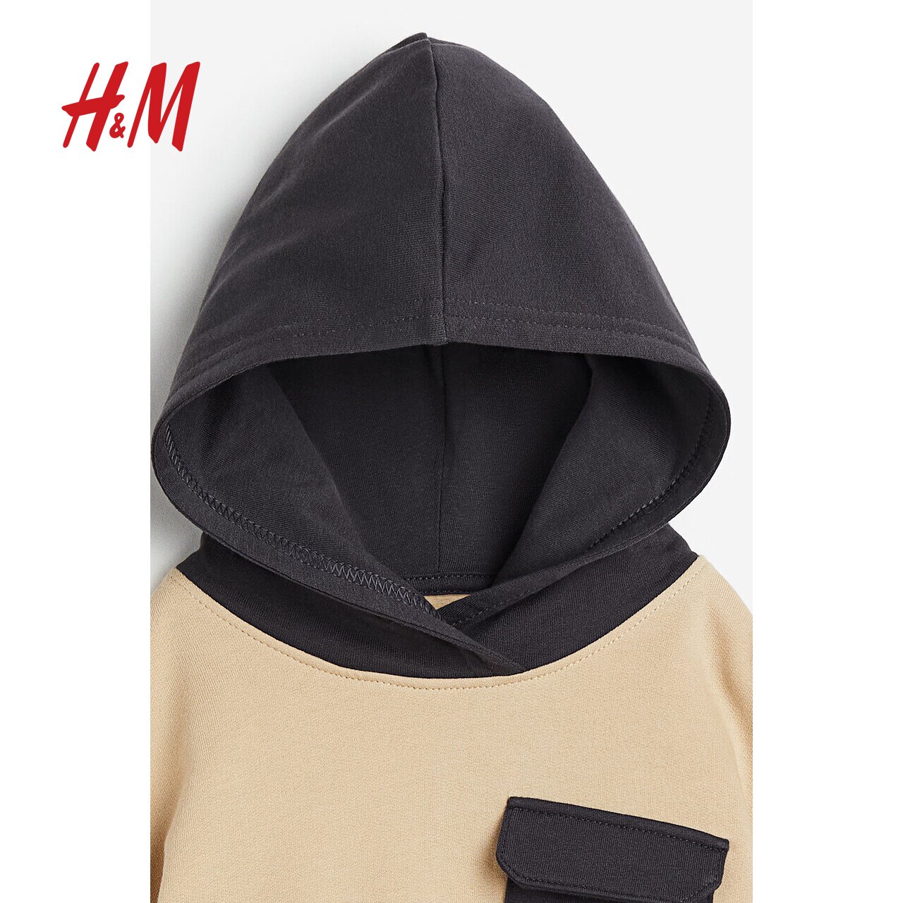 HM童装男婴卫衣春季拼色萌系舒适连帽绒衫1075726