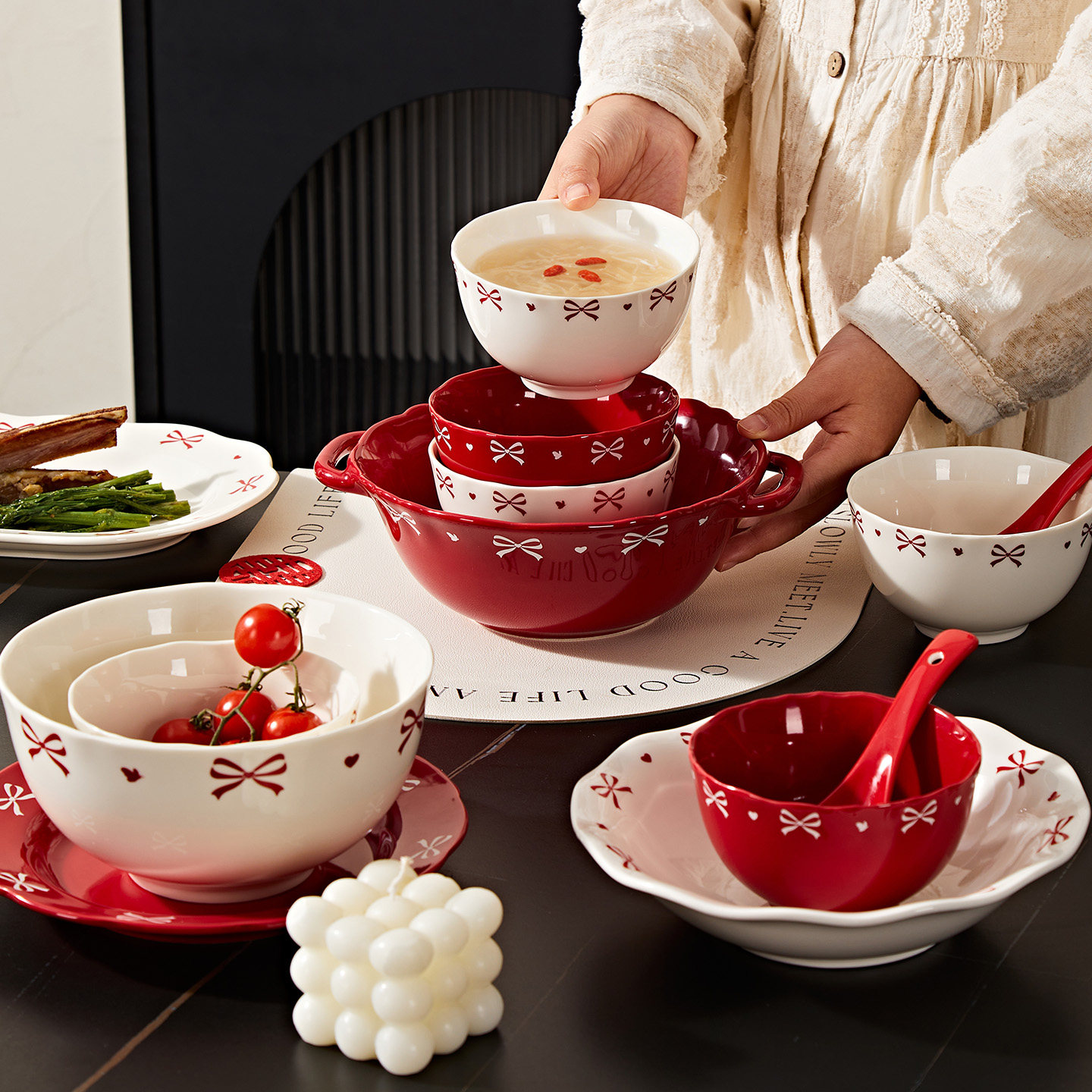 高档碗碟餐具陶瓷新婚礼物送新娘红色碗盘筷套装乔迁新居结婚礼盒