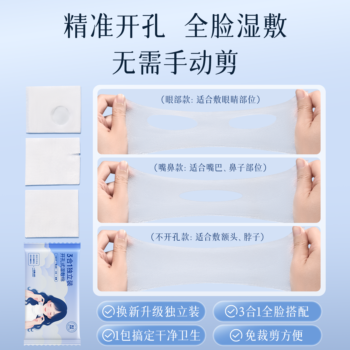 开口湿敷棉敷脸专用可拉伸三合一开孔式超薄天丝面膜纸化妆棉脸部