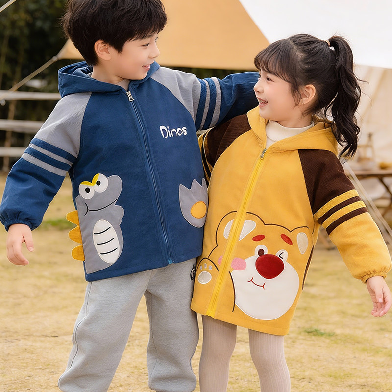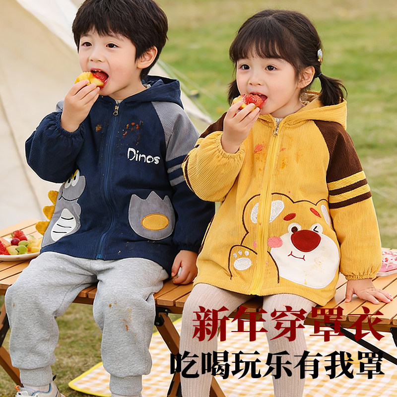 冬季宝宝保暖反穿衣小孩防水防脏长袖围裙儿童外穿羊羔绒护衣可爱