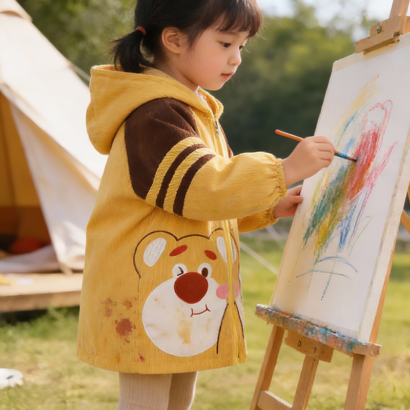 儿童罩衣男宝宝洋气外穿冬2025新款羽绒服防脏护衣防水中大童棉衣