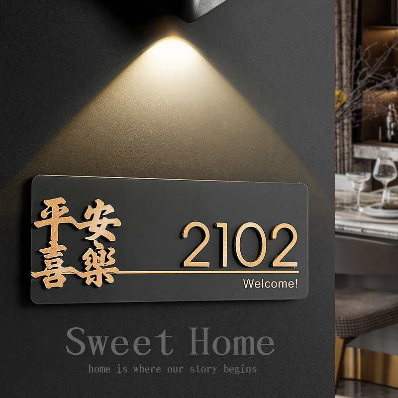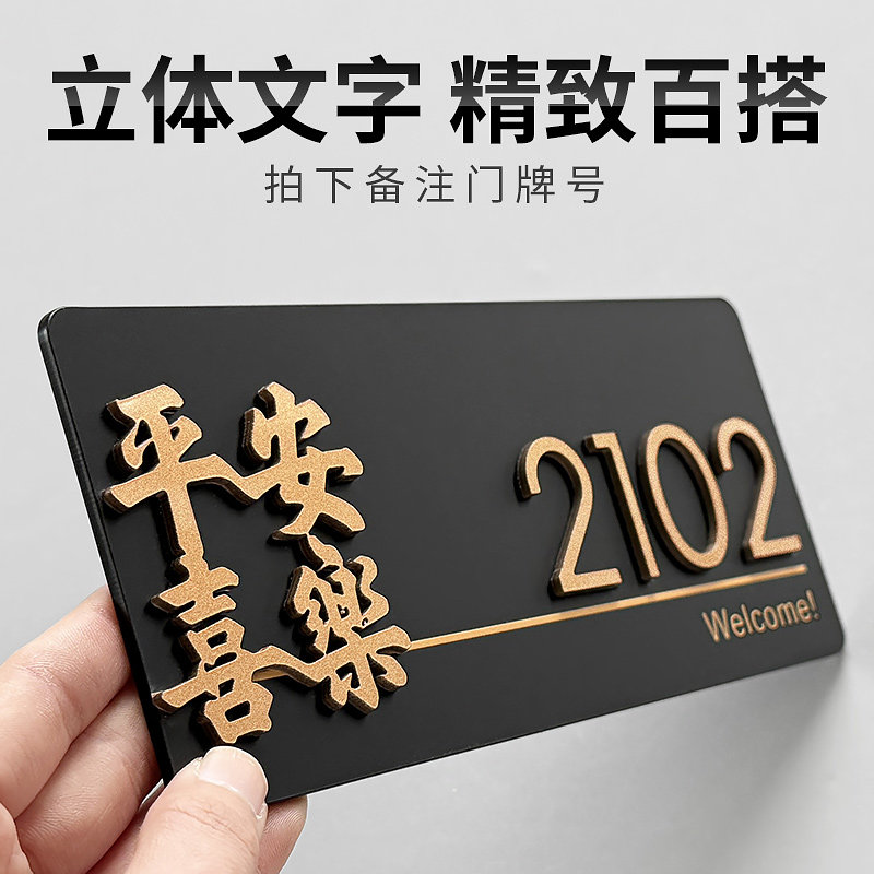 2026新款门牌号码牌家用高级感入户门口装饰定制轻奢创意家庭住宅酒店房间房号自粘数字贴发光感应灯门号订制