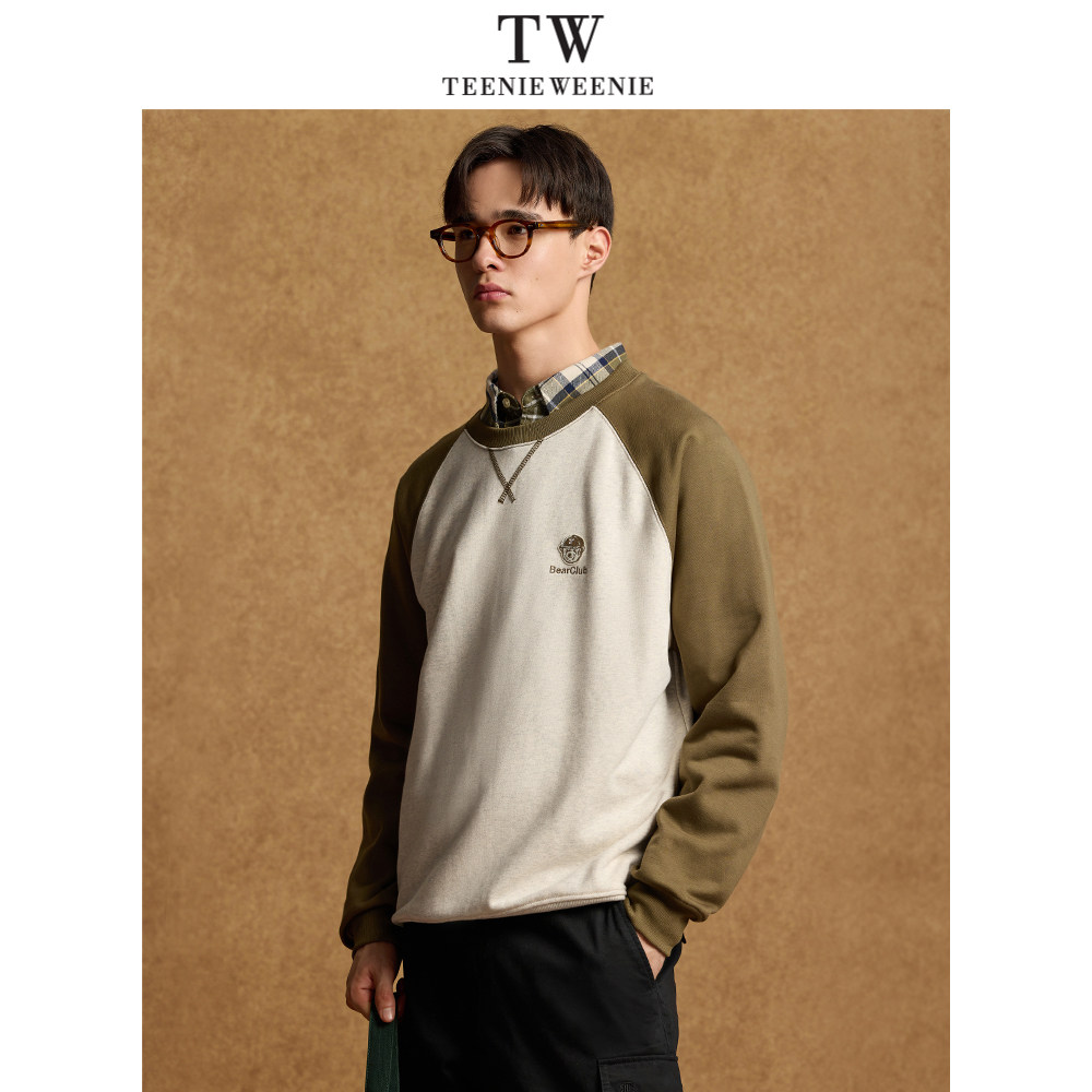 TeenieWeenie小熊男装简约时尚圆领卫衣春季撞色休闲潮流套头上衣