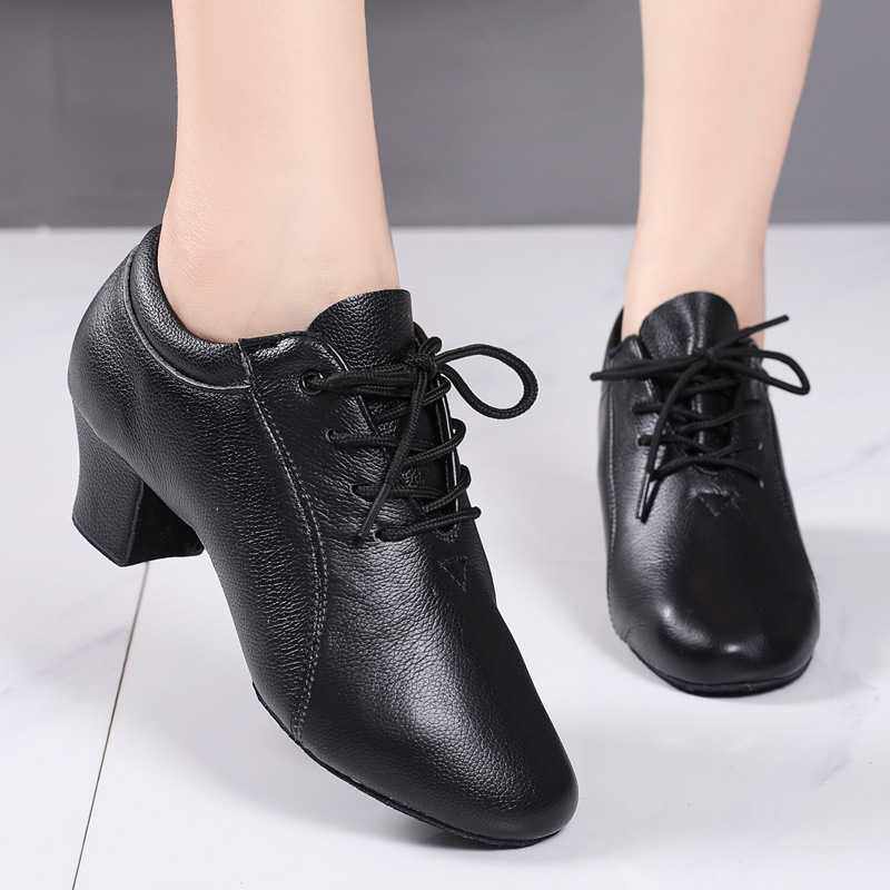 成人拉丁舞鞋女中跟软底教师鞋真皮舞蹈鞋摩登交谊舞鞋广场跳舞鞋